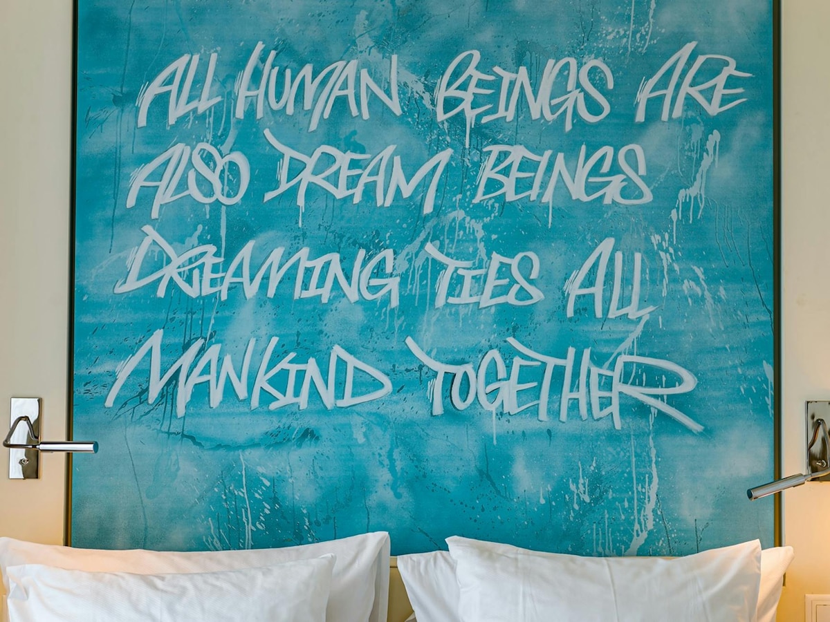 在4星級Hotel N 'vY的Boho客房,您可以找到泡茶設施和五彩繽紛的躺椅。 不拘一格的傢俱、清新、安靜的色彩、靈活的氛圍–每個空間都以適合您的語氣經驗。 為了確保充滿藝術氣息的睡眠,牀頭板上有塗鴉藝術家Meres One的作品。 您也會發現對您在連線方面的需求格外關注。