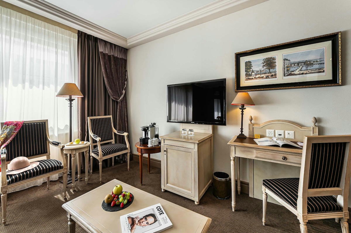 入住我們優雅的經典客房,位於四星級高級皇家飯店,配有新古典主義家具和現代舒適設施。 房間面積為20-21平方公尺,最多可入住兩位房客,可選擇雙人牀或雙人牀。 享受免費Wi-Fi、空調、平面電視和免費的咖啡/茶盤。 皇家飯店位於日內瓦市中心,靠近主要景點,可使用健身中心、桑拿房和土耳其浴室。