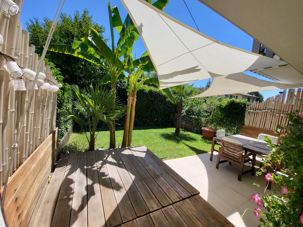 About 15 minutes by direct bus from Geneva city center, we rent this beautiful house, surrounded by a large and well-kept garden with two terraces. It is the perfect place to relax from the hustle and bustle of the city.