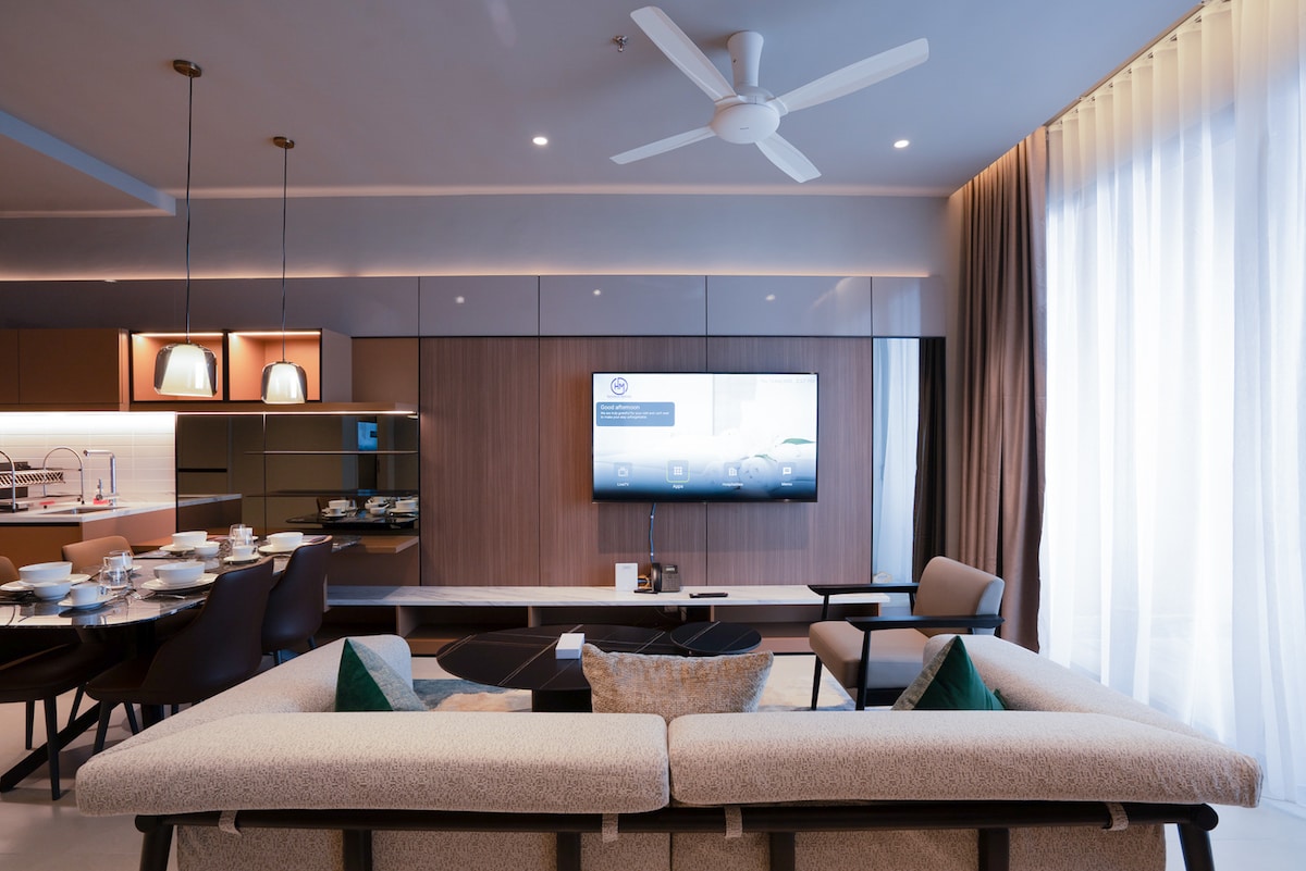 🏡 Spacious 3R2B Family Suite • 🛁 Jacuzzi • 🎲 Rummy/Mahjong • 🍲Steamboat Enjoy a modern 3-bedroom family suite with Netflix, mahjong/rummy table, steamboat set, and a private balcony jacuzzi. Wake up to stunning mountain views with a direct link-bridge to SkyAvenue. This brand-new unit fits 6–8 guests with 2 extra mattresses. Over 50 family-friendly facilities onsite. Just 15 minutes via escalators to SkyAvenue and First World Plaza. Parking: RM10 weekday / RM15 weekend. (Per Entry)