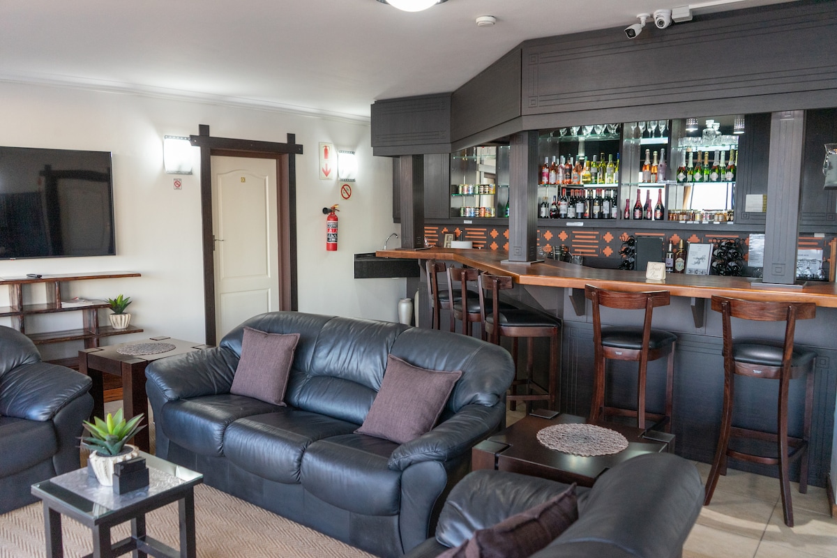 Spacious one-bedroom apartment near George’s top golf courses. Each unit offers One en-suite bedrooms with king-size or single beds, walk-in showers, and flat-screen TVs. Enjoy a lounge with TV, kitchenette, and private balcony with braai and mountain views. Ideal for 4 guests, with free fiber Wi-Fi, breakfast on request, and solar power to ensure uninterrupted comfort. Perfect for golfers and couples seeking comfort, convenience, and scenic beauty on the Garden Route.