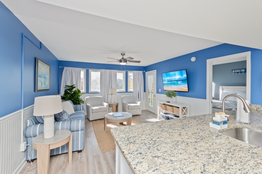 我們的公寓位於「A」棟的前部。這間公寓主樓有一張加大雙人牀,配有全尺寸獨立浴室,第二間臥室配有兩張單人牀,客廳配有一張加大雙人沙發牀。 還有另一間全套衛浴。 我們位於默特爾海灘( Myrtle Beach )南端的Surfside邊界的33英畝海濱度假村,有6個泳池。我們還為房客提供24小時保安服務。 我們的度假村是一個非常適合家庭的度假村。 漂漂河、溫水泳池。戶外遊戲!