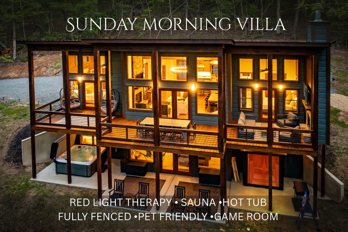 Cedar Grove Haven為您的下一次藍嶺山度假帶來全新的氛圍! 這座新建的房子的每一寸都是精心設計的,為您提供身心靈的休息和活力。 大窗戶提供風景如畫的樹林景觀和充足的自然光。前往戶外享受水療、壁爐旁的電影、瓦斯烤架上的晚餐或玩有趣的沙狐球遊戲! 開車前往藍嶺市中心僅需10分鐘!