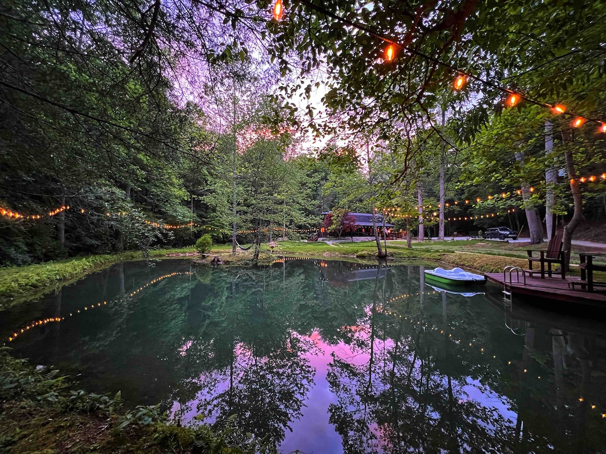 Our secluded creekside cabin is tucked away on a trout preserve in Dahlonega’s national forest, surrounded on all sides by nature & water! We have a natural swimming hole with a constant running flow of mountain spring water (it gets its blue tint from the spring minerals). Enjoy hiking, fishing, hunting, gold panning, and exploring the extensive forest service roads! Multiple small waterfalls 30 ft from the house. Pool table, Firepit, Outdoor kitchen, Hammocks. Sleeps 14!