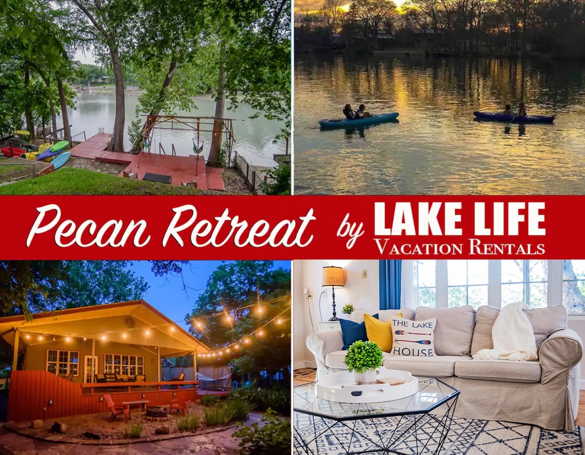 Pecan Grove Retreat坐落在瓜達盧佩河畔,地理位置優越,位於奧斯汀和聖安東尼奧之間。 房源非常適合兩個家庭入住,擁有各種設施,包括三艘皮劃艇、槳板、乒乓球桌、桌上足球桌、吊牀、吊牀椅、火坑和木炭烤架。 享受放鬆和休閒的完美融合。 靠近新布朗費爾斯( 25分鐘)、聖安東尼奧( 45分鐘)、奧斯汀( 1小時)和休斯頓( 2.5小時)科珀斯( 2.25小時)
