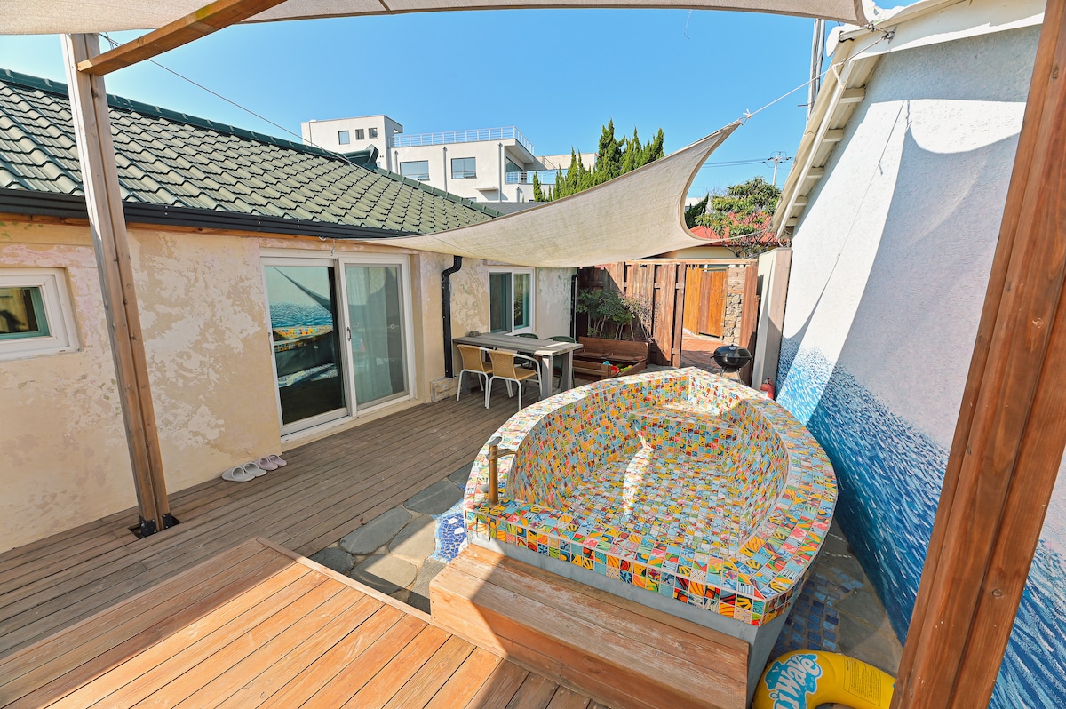 露天按摩浴缸 / 沙地遊樂場 / 私人後院 / 溫馨花園 / 步行3分鐘到協賴海灘 / 濟州古玉