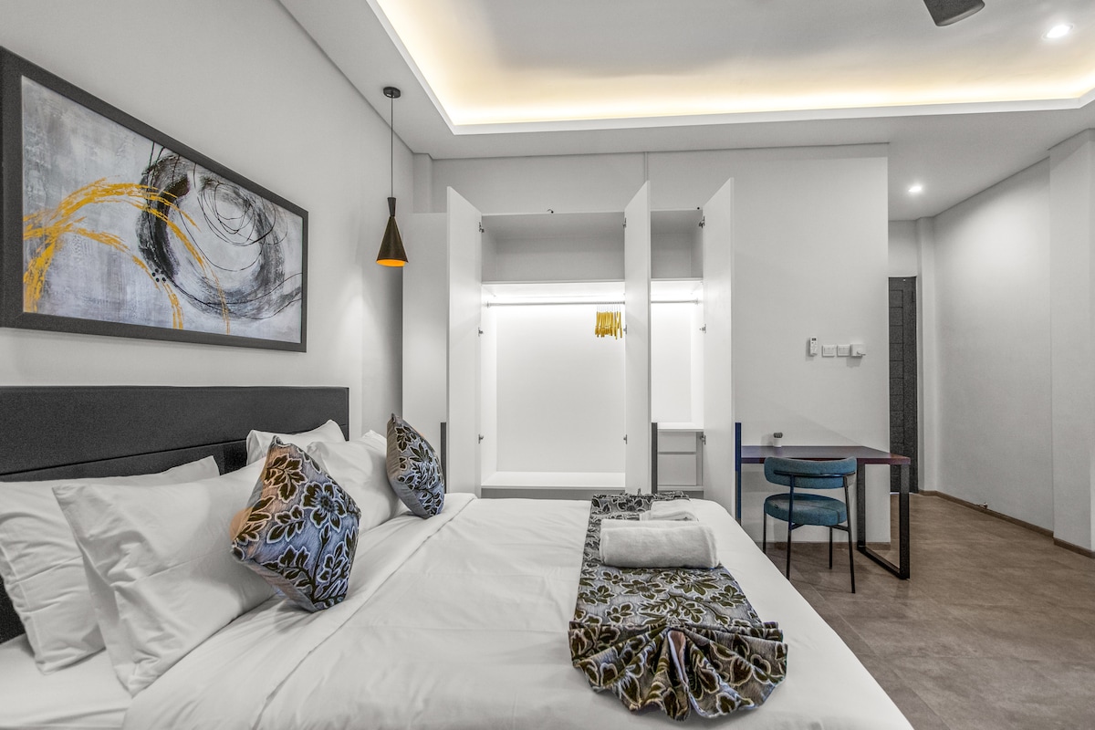 New 1BR Apartment in Central Ubud: • Comfortable king bedroom with floor-to-ceiling windows and jungle/rice-field views from the balcony • Modern bathroom with premium toiletries & hairdryer • Fully equipped kitchenette and dining table • Shared tropical garden, patio and large swimming pool • 300 Mbps Wi-Fi • Daily cleaning, fresh towels & linens included • Baby cot & high chair on request • Netflix & PS5 on request • Concierge service for scooter rental, transfers, spa bookings, tours & more