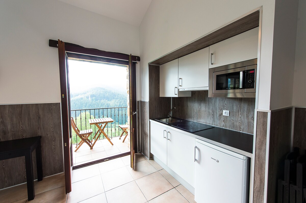 Studio Nº3 , en Izal Landetxea. Estudio con todo lo necesario para una estancia perfecta. WIFI, Baño, cocina equipada, sofá, tv plana, cama 180. Ambiente tranquilo, servicio de alta calidad. Ofrecemos un espacio honesty bar, donde disponemos de cafés,cava, refrescos, copas de vino…siempre disponible para nuestros invitados. La casa esta situada en el centro del pais vasco a 35 min de San sebastian y Bilbao. Camas supletorias bajo disponibilidad. Consultar.