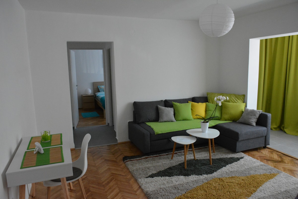 Welcome to your cozy getaway! Kick back and relax in this calm, stylish studio. My charming apartment features a comfortable 180x200 cm bed and is perfectly situated just 400 meters from the Iulius Town (5 minutes by foot) and 1km away from the historical and cultural city center. Iulius Town is the busiest place in the city. Here, you can find any restaurant you want, any café you like, and any store you want to shop in. It's really the place near you want to stay when you come to Timisoara