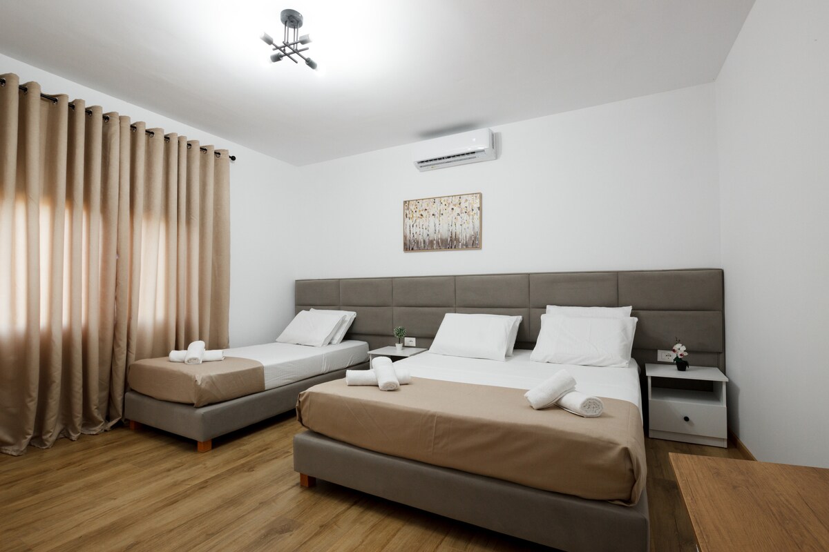 這間現代化且設備齊全的平房坐落在著名的Gjirokaster市外面的葡萄園中,絕對寧靜和舒適,位於美麗的山谷中,四周環繞著大自然,可欣賞令人難以置信的山景和城市景觀。 配有加大雙人牀、設備齊全的廚房、洗衣機、烘幹機、洗碗機、獨立浴室和高速網路。 您可以免費使用兩輛自行車,房源內也有免費停車位。