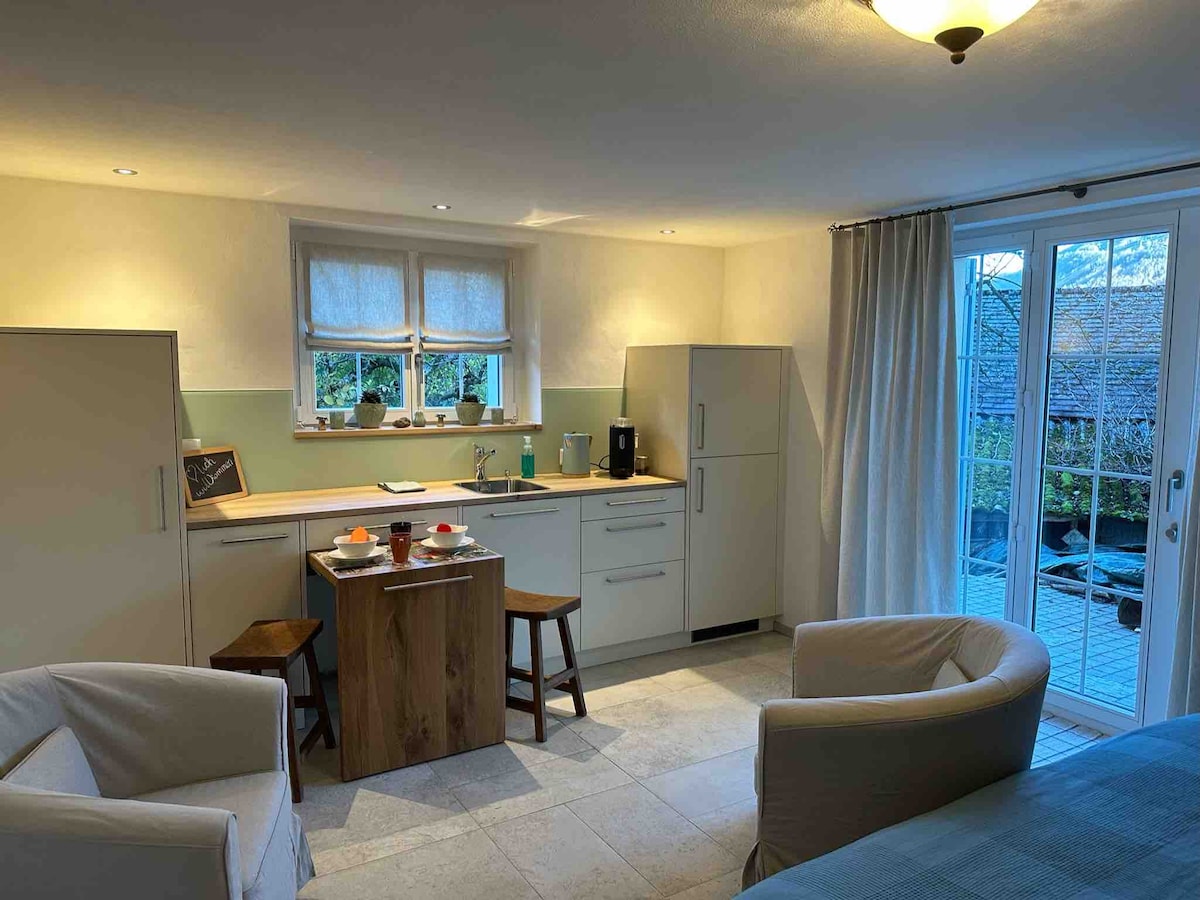 在格拉魯斯阿爾卑斯山尋找你的平靜,重新開始。 私人、小型、舒適的單間公寓,配有私人桑拿和熱水浴缸,可供放鬆身心(可選預訂)。 非常適合情侶或單身旅客入住。 提供免費 WiFi、Netflix、Nespresso 咖啡機和兩輛城市電動自行車。 距離自然珠寶Äugsten僅5分鐘,距離克倫塔爾湖僅15分鐘。 單間公寓前面就有停車位。
