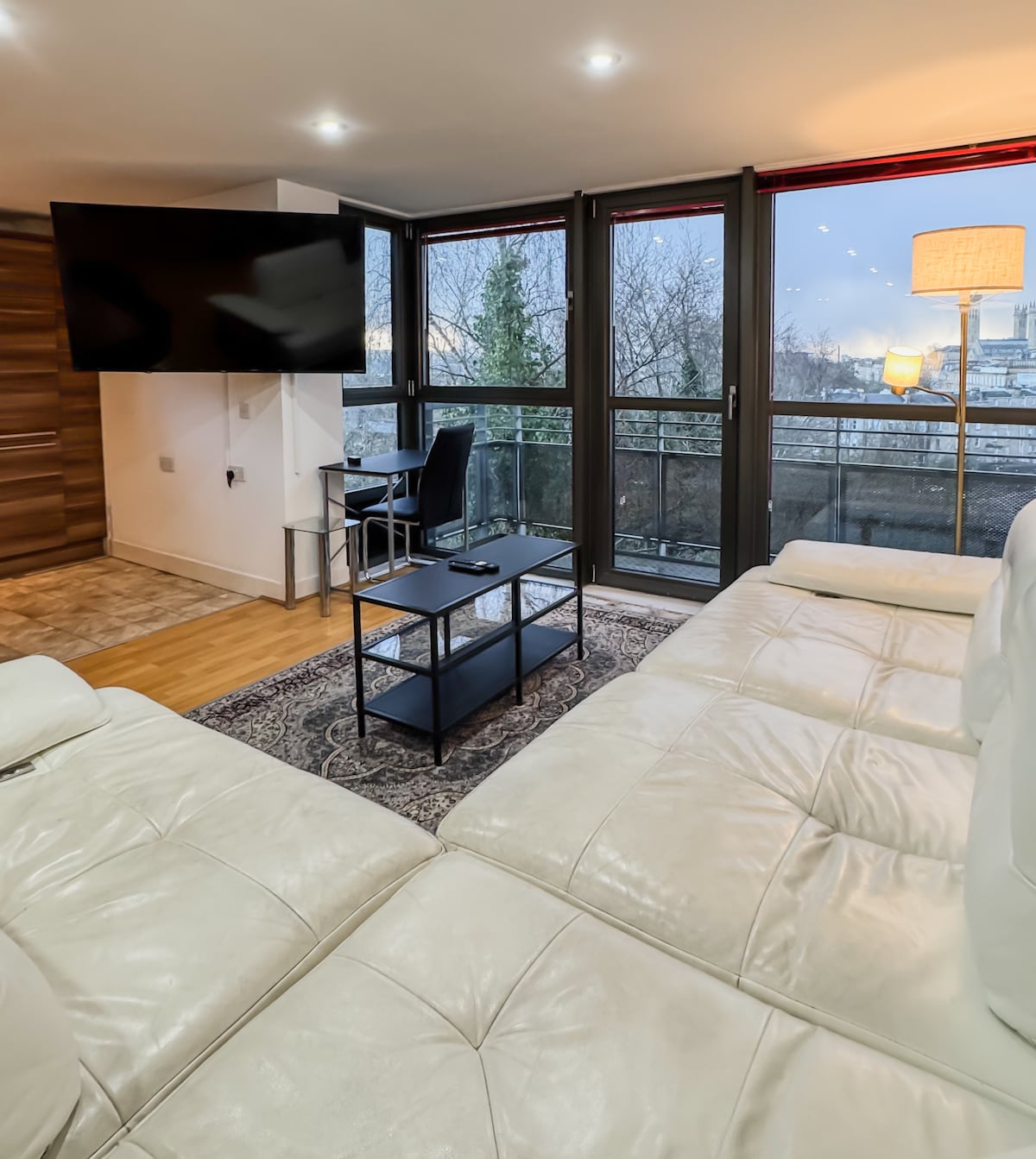 格拉斯哥市中心明亮、一塵不染的公寓。