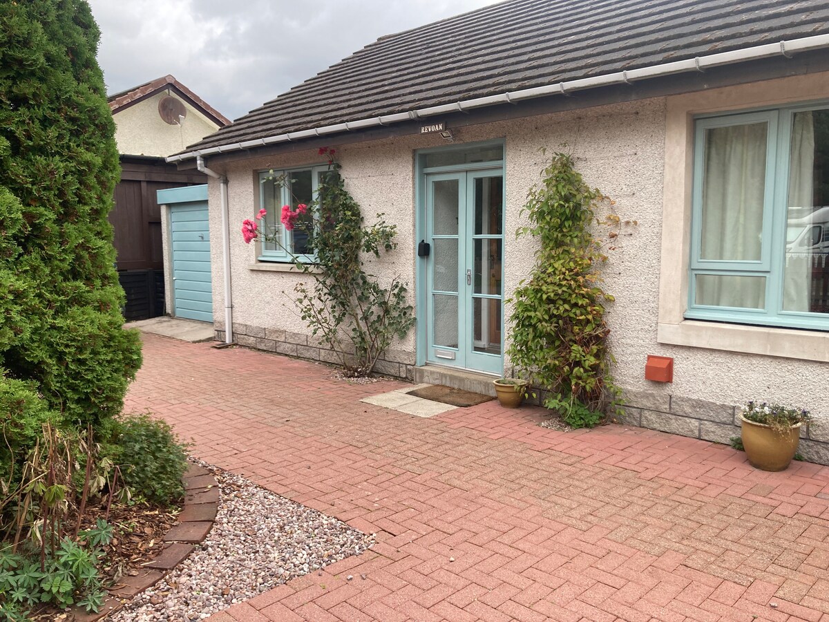 一臥室公寓,位於凱恩戈姆國家公園的Aviemore。 超過2位房客或想要獨立房間的房客的額外睡眠安排:花園中的避暑別墅/小木屋。 此房源有一張單人牀或雙人牀。 所有設備與服務都在房源內。 必須預訂3位以上房客才能開放小木屋以支付費用。 前往公共交通工具、市中心和戶外都很方便。 位於安靜的街區,有越野停車位。 大花園,白天大部分時間都能曬太陽。
