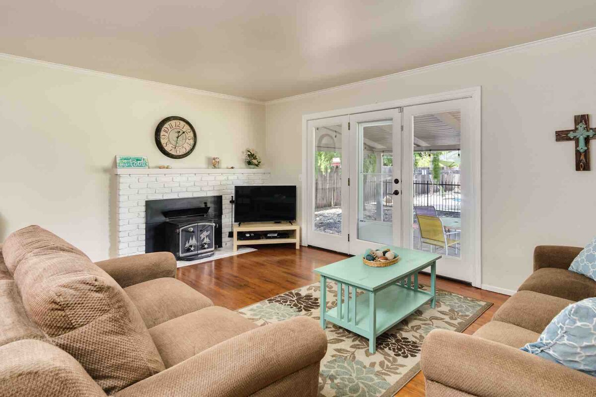 非常適合畢業生和家庭入住!步行前往CSU Chico校區或Enloe醫院!這間寬敞的4間臥室、2間浴室度假屋適合家庭入住。 用全新油漆、電器、櫃臺、地板、地毯、浴室更新等精美更新!寬敞的1800平方英尺開放式布局,配備現代農舍美觀和雙人牀,並配合智慧家居升級。高速WiFi和Netflix。