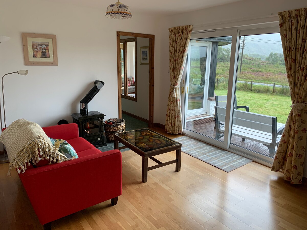 3 minutes from the ferry. You have access to Camard's own private estate of 87.5 acres of pastureland, Oak woodlands & waterfalls! Wild beachs within walking distance through the woods. Breathtaking views over the water to the mountains of Knoydart, which you may enjoy from the lounge or deck. Unwind, & completely digital detox, in one of the U.K,s most awesome, tranquil and beautiful locations. Forest tracks opposite. Please enquire 48 hrs in advance re booking a BBQ dinner if required. Relax