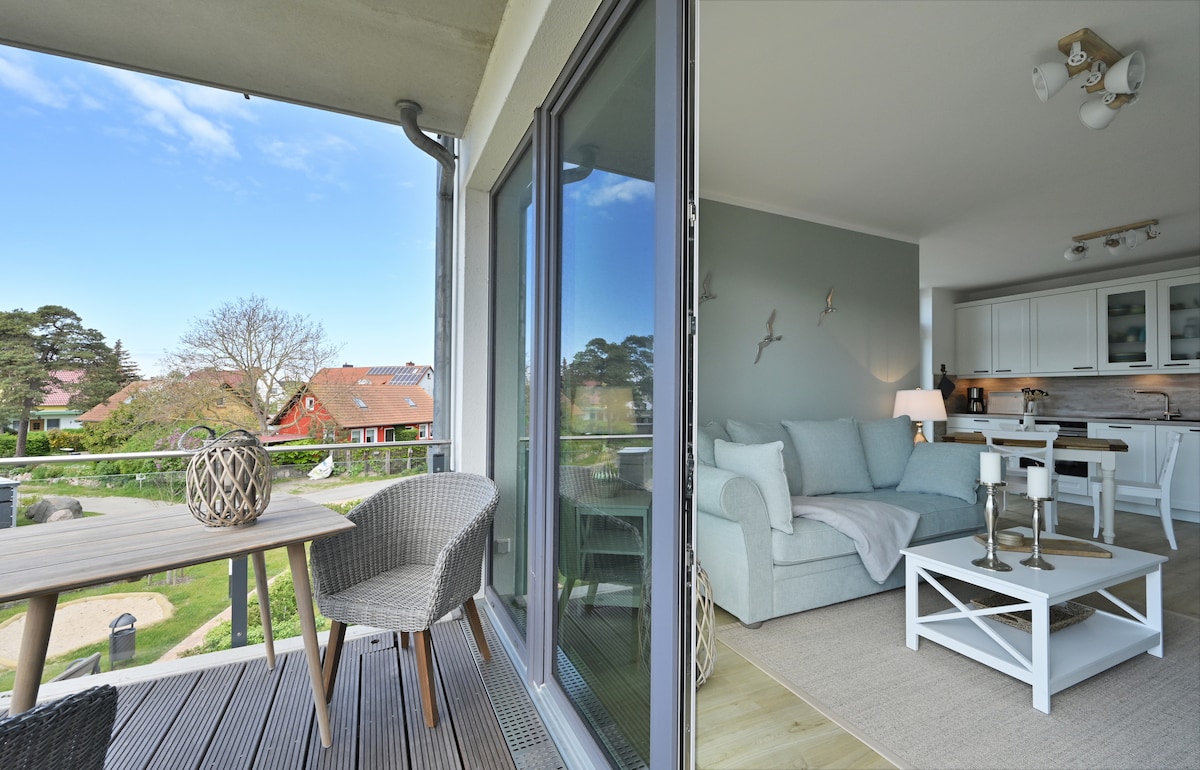 Die Ferienwohnung "Waveside" hat alles was das Herz begehrt. Zwei Schlafzimmer mit je einem Doppelbett, ein Bad mit Dusche, ein Gäste-WC, ein Wohnzimmer mit Kamin und integrierter Küche. Auf der riesigen Dachterrasse genießen Sie die Nähe zum Meer. Die Ostsee und der weiße Strand sind nur zwei Gehminuten entfernt. Zur Wohnung gehört ein Tiefgaragenstellplatz. Sie gelangen mit einem Aufzug direkt bis zum "Waveside". Im Gebäude befinden sich außerdem eine Gemeinschaftssauna sowie ein Waschsalon.