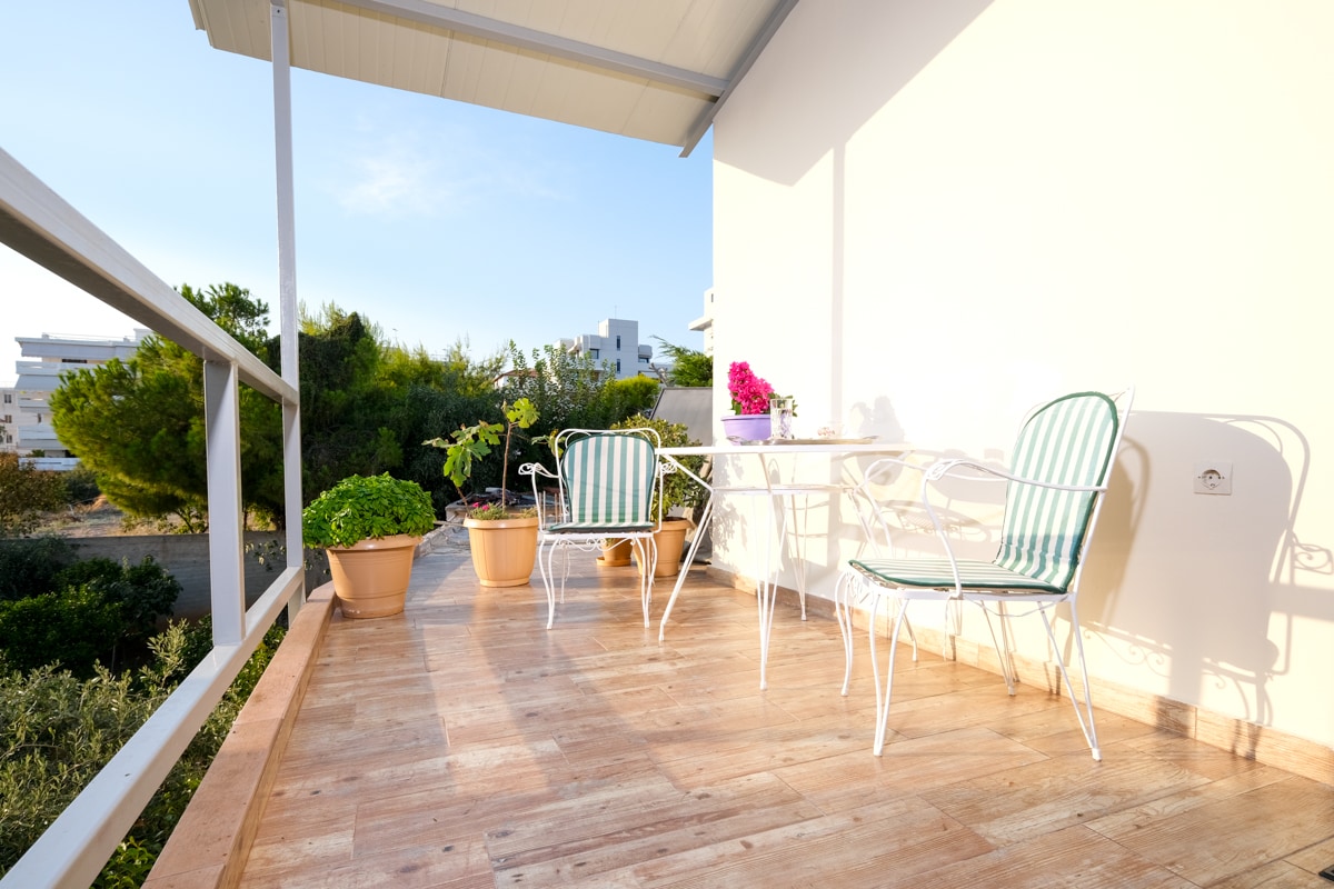 我們新翻修的45平方公尺度假公寓時尚、簡約而舒適,讓您感覺賓至如歸。這間公寓是白色和淺灰色的天堂,一整天都充滿自然光。我們的私人100平方公尺露臺將為您提供度假所需的所有寧靜,讓您欣賞Vouliagmeni 's Bay的壯麗景色。 靠近海灘、滑雪學校、網球場、籃球場、飯店、餐廳、森林、公園,距離雅典中心30分鐘,距離雅典機場30分鐘。