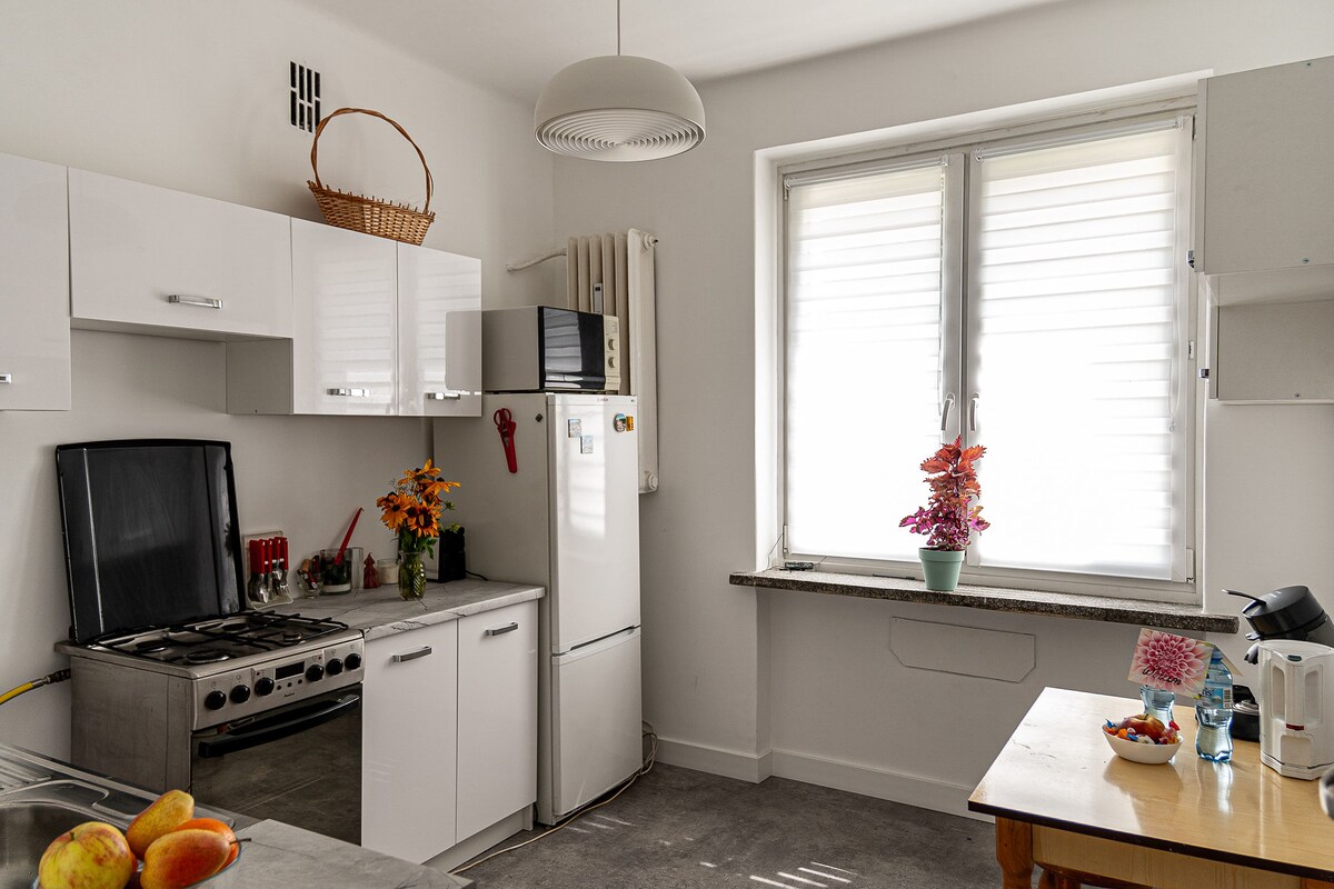 位於市中心的音樂區的時尚公寓。附近有:音樂學院、劇院、公園、餐廳、咖啡館。整套公寓供房客使用,包括設備齊全的廚房、寬敞的房間,配有舒適的雙人床和折疊沙發、浴室和大型有頂陽臺,以及休息區。公寓位於一樓,陽台朝向庭院,確保安靜和放鬆(沒有街道噪音)。