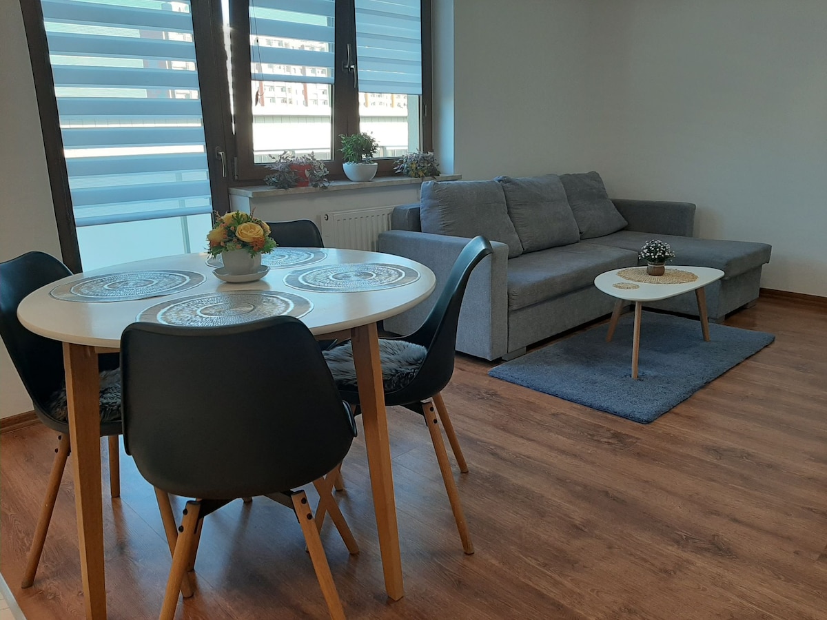 市中心的公寓,配有客廳、大沙發牀和小廚房、臥室(共4張牀)、浴室和走廊。 公寓設備齊全。 該街區受到監控。這個單位的優點也是它的位置。 它遠離交通繁忙的街道,但靠近購物中心( 800公尺)、ul的運動大廳。Struga ( 200公尺)或Leśniczówka公園( 200公尺)。 距離火車站和公車站約2000公尺。
