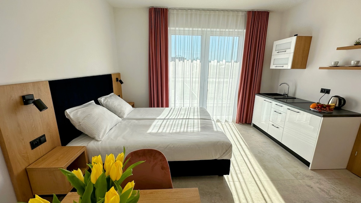 我的房源非常適合:情侶、商務差旅人士和家庭(有小孩)。 公寓可容納5人舒適入住。 愉快的公寓是位於Pogodna街( Pogodna Street ) Łeba的新獨立公寓,位於一棟3層建築(一樓)。 大樓入口有停車位,大樓後面的有圍欄後院有一個燒烤區和一個遊樂場。 步行10分鐘即可抵達市中心,步行約20分鐘即可抵達海灘。