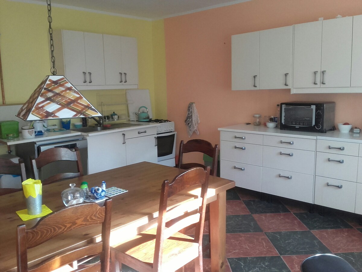 房子位於Lednicki景觀公園。 在Skrzetuszewski湖上,毗鄰Lednicki Pólów -年輕人的聚會場所Lednica 2000 ;可前往Lednica湖上的私人海灘,可租用皮劃艇、吸煙。距離Ostrów Lednicki -洗禮Mieszka I和Dobrawa的地方7公裏;距離Gniezno 15公裏。 距離擁有100年歷史的養蜂場不遠,這是一個種植山羊和奶酪的農場。 提供當地熟食產品、養母雞的雞蛋和牛奶。