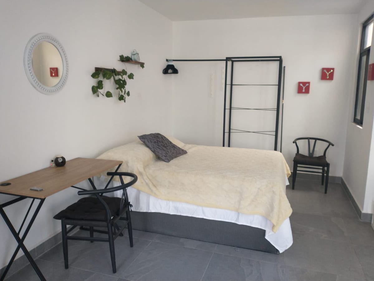 享受這個實用舒適的住宿,距離墨西哥城機場、GNP 體育場/賽車場、體育宮、TAPO 巴士總站、OCEANIA/IKEA 購物中心 10 分鐘,附近有咖啡廳、酒吧、餐廳、電影院和商店。 Loft 位於二樓,配有一張雙人床、設備齊全的廚房、Wi-Fi、Roku 電視、辦公桌、保險箱和獨立浴室。 大樓有共用洗衣機和屋頂花園。 閣樓內禁止吸煙