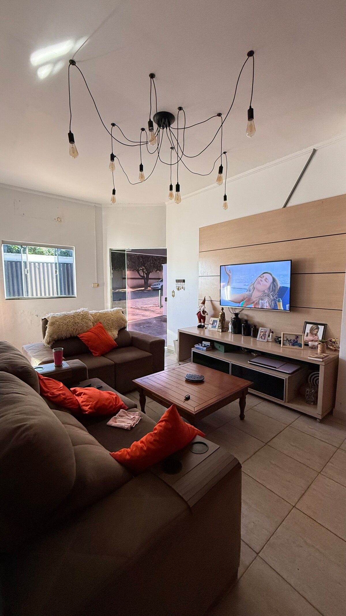 Quartos: Ar-condicionado, climatizador, armário, roupa de cama e 4 camas sendo uma de casal. Sala: Wi-Fi, TV e sofá retrátil Cozinha: Geladeira dúplex frost free, armário planejado, chaleira, liquidificador, micro-ondas, xícaras, fogão com gás, vasilhas, pratos, talheres e garrafa térmica. Área de lazer: Churrasqueira, máquina de lavar, ferro e tábua de passar roupa, cadeiras de fio, tanque e cobertura extra para proteção solar Garagem: coberta Espaço externo sem cobertura Banehiro: água quente