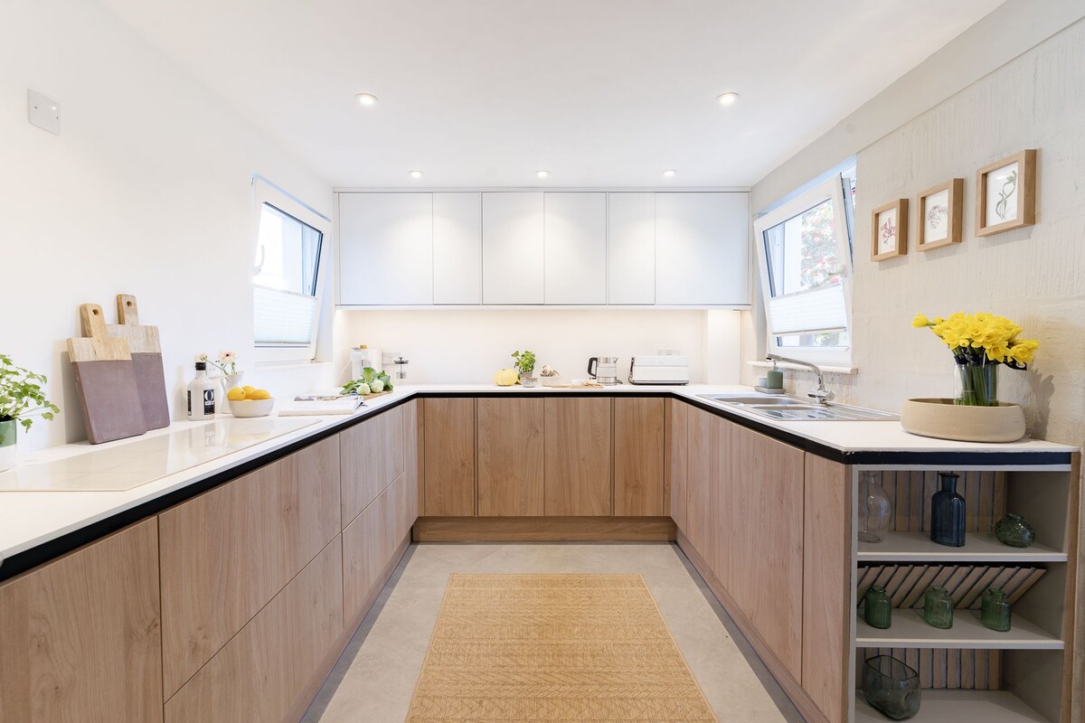 Treetops is a lovely recently renovated modern first floor flat with two bedrooms. The flat has an open plan kitchen diner living area make it perfect for families with children and dogs! The flat is a one minute walk from the main carpark where you can jump on the local town bus or a five minute walk down the the hill to the main high street! The kitchen is fully equipped with a dishwasher, fridge freezer, oven and microwave. The washing machine is located in the outhouse in the garden!