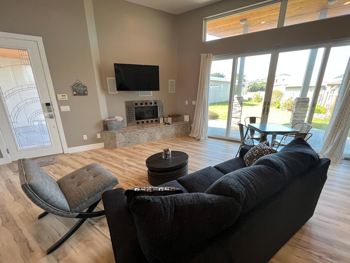 從這間豪華出租屋享受(距離海灘僅0.5英裏)。 從露台欣賞美麗的海景和令人驚嘆的日落,露台有6人熱水浴缸 適合徒步旅行、釣魚、劃獨木舟等等的完美海濱度假勝地! 房源配有智慧電視、電壁爐、備有不銹鋼電器的充足廚房。 非常適合家庭入住-隨身遊戲、高腳椅、玩具等。 我們的5星評價說明了這一切! 由於過敏,我們目前無法接待動物