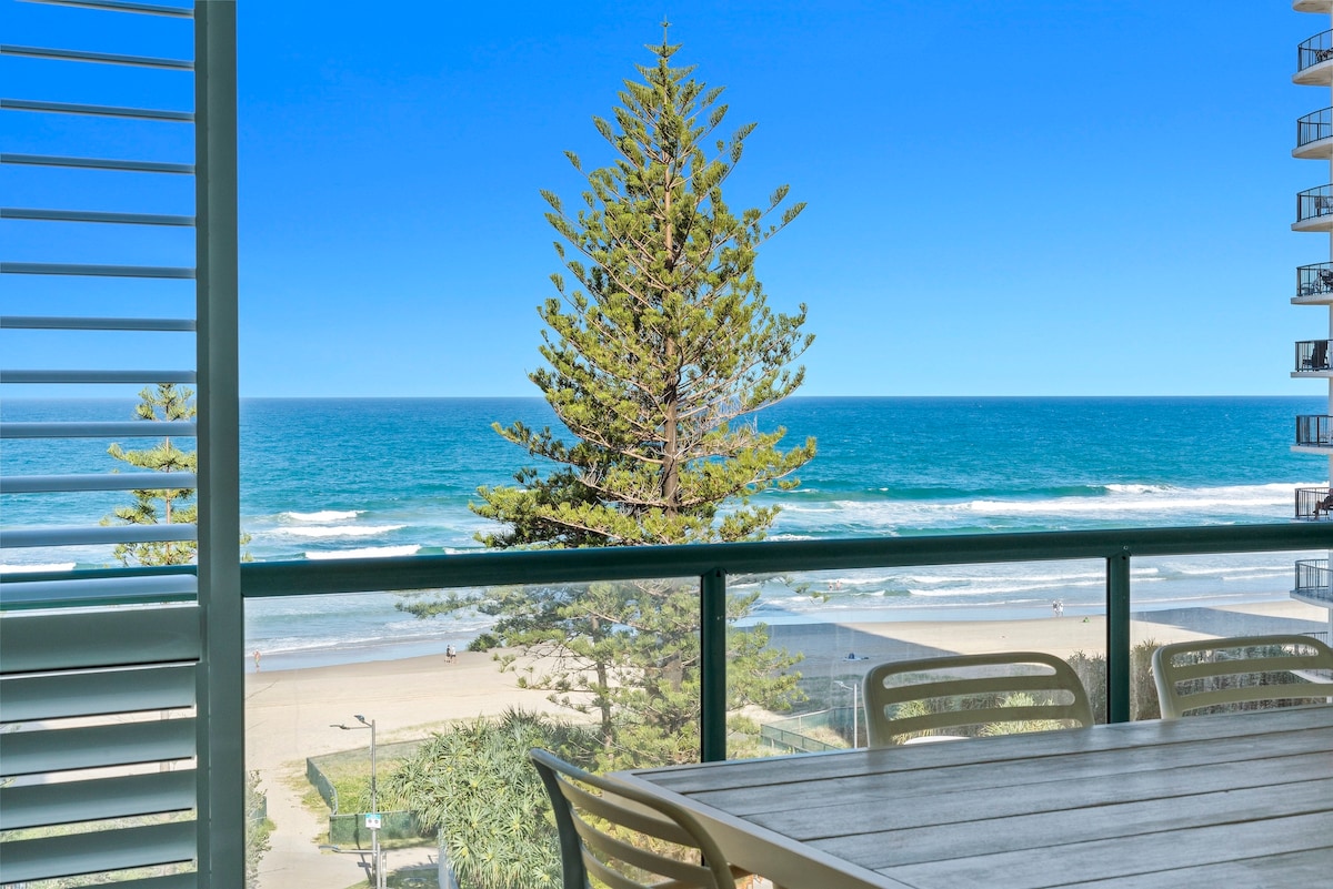 Admire the superb corner apartment views overlooking the glistening ocean. Located on fifth floor, high enough to enjoy the beach views, low enough to enjoy hustle and bustle activities on the street, 10 minutes walking to the entertainment precinct of Surfers Paradise, markets, shopping, restaurants, clubs, across the road from Surfers Paradise patrolled beach. Light rail station 8 minutes walk. Unit has smart TV, connect your Netflix, Apple TV etc..