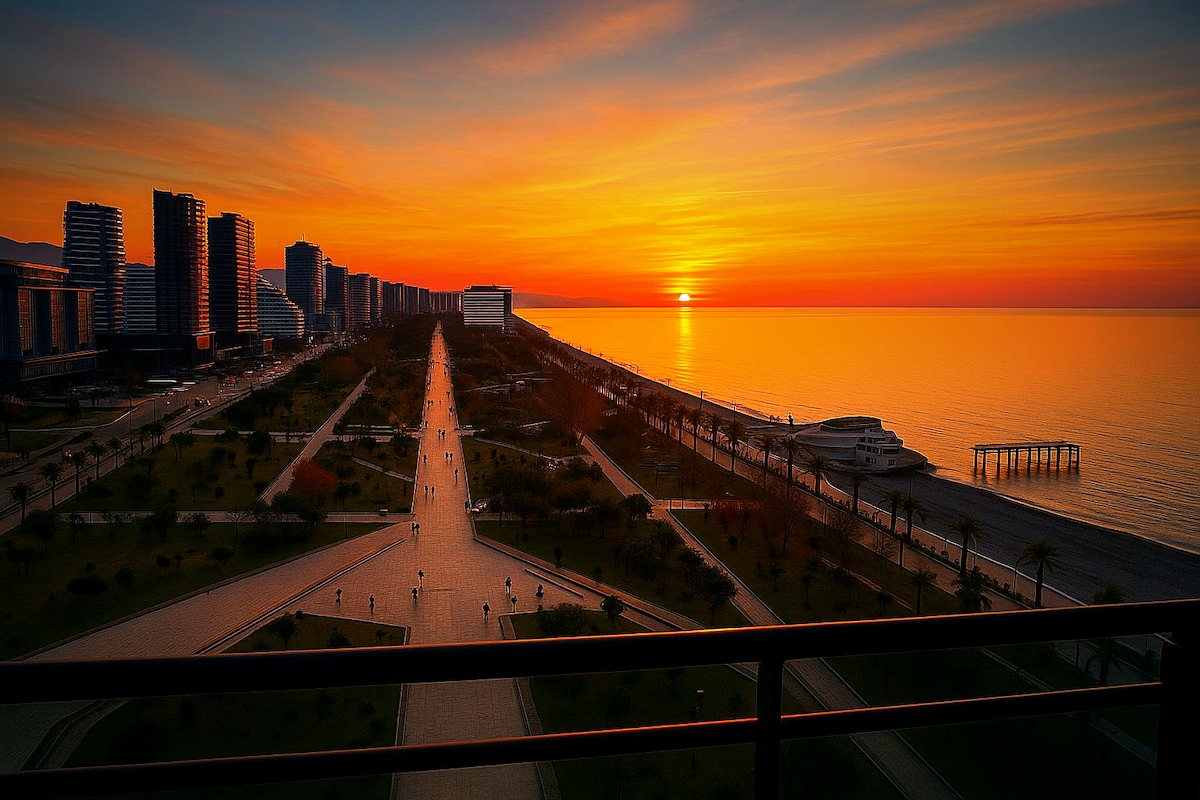 位於Courtyard by Marriott - Alliance Palace大樓13樓的豪華公寓。 一間臥室和一間配有小廚房的客廳。 平靜和簡約的設計。良好的隔音。 高品質翻新。左邊是海景,前面是城市,右邊是山脈!提供一台Xbox遊戲機、兩個遙控器和一台咖啡機。 免接觸入住。 ・免費WiFi 大樓設有豪華餐廳,提供自助早餐;入場費為 40 格魯吉亞拉里。