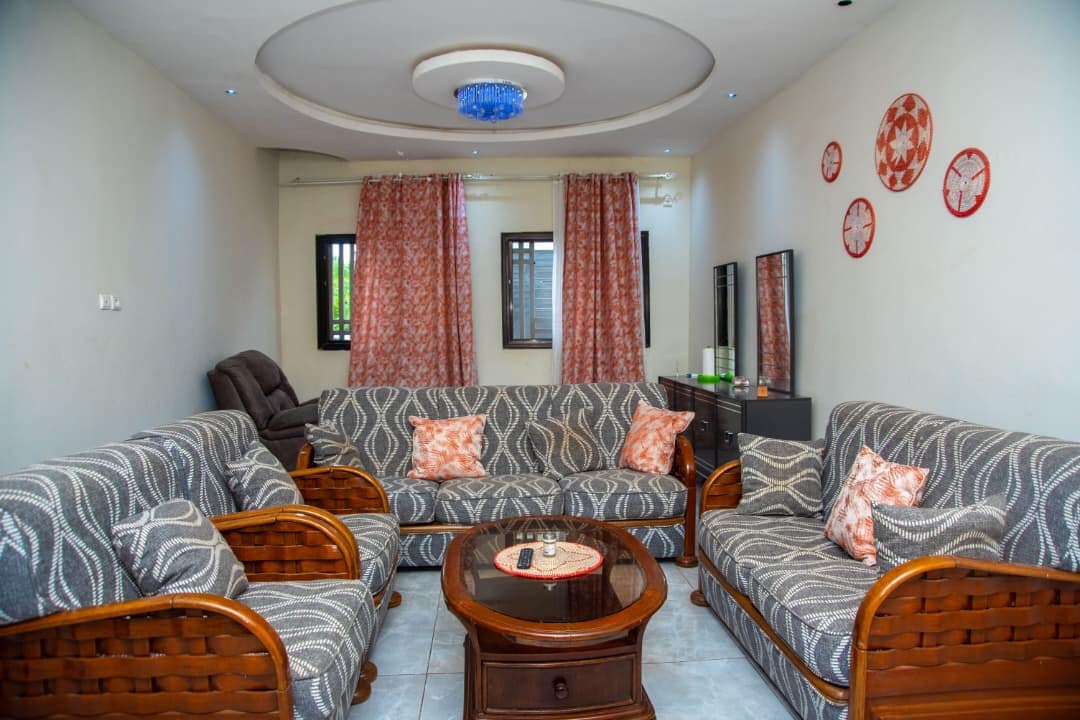 Oubliez vos soucis dans ce somptueux appartement se trouvant au 4ème étage avec ascenseur dans une résidence sécurisée. Sa décoration époustouflante vous fera apprécier votre séjour dans un confort total.. L'appartement est totalement climatisé, équipé de deux grands salons, d’une Smart TV 4K, de la Fibre optique, Netflix, Canal, un service de gardiennage assuré 24h/24. Un van en location peut être mis à votre disposition pour vos transferts à l’aéroport mais aussi pour vos déplacements.