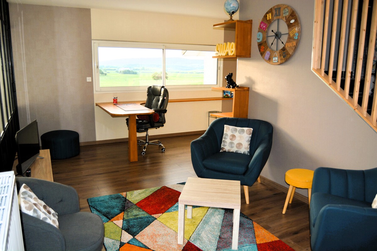 Venez vous détendre dans ce logement unique avec tout le confort nécessaire pour s'y sentir bien. Idéal pour venir passer des moments conviviaux en famille ou entre amis. Doté d'une vue imprenable sur la Suisse, ce chalet permet de contempler un paysage tout en relief lors de ses repas. C'est un endroit privilégié si vous aimez la nature et que vous éprouvez le besoin de vous ressourcer. Que vous aimiez pédaler ou marcher avec ou sans raquette, venez découvrir les magnifiques sentiers régionaux.