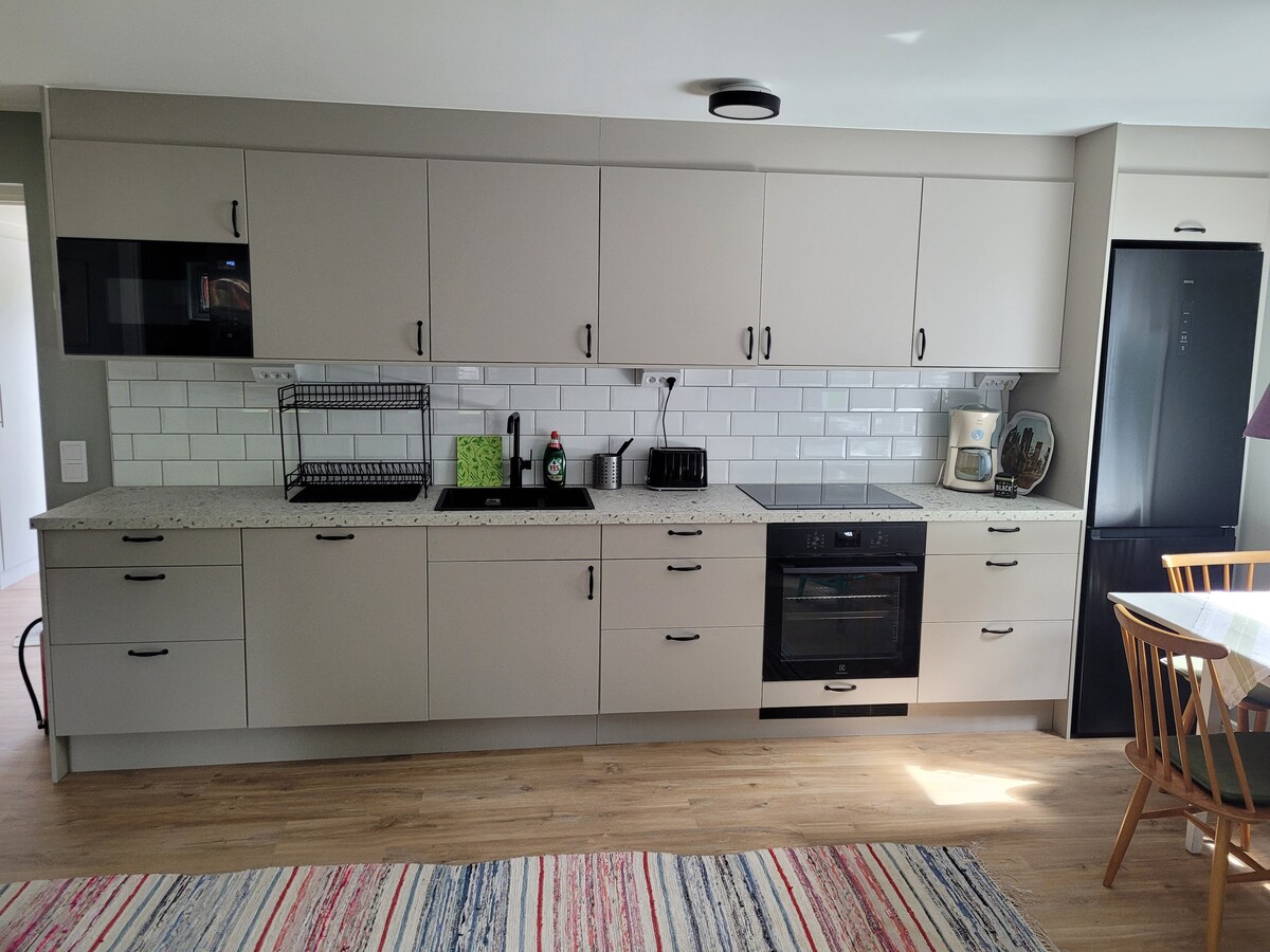 新建房屋( 2022年) ,靠近大海和卡爾斯羣島的神奇日落,擁有所有現代化設施 單一位置,距離大海200公尺,距離Djupvik的釣魚營和海灘900公尺。 適合老年人的單層房屋,總計130平方米、4間臥室、8張牀、2間廁所/浴室、桑拿區。 設備齊全,有洗碗機、洗衣機、空調和光纖連接的WIFI 500/500 Mbit/s 大露臺,配有室外家具、吊牀和燃氣烤架