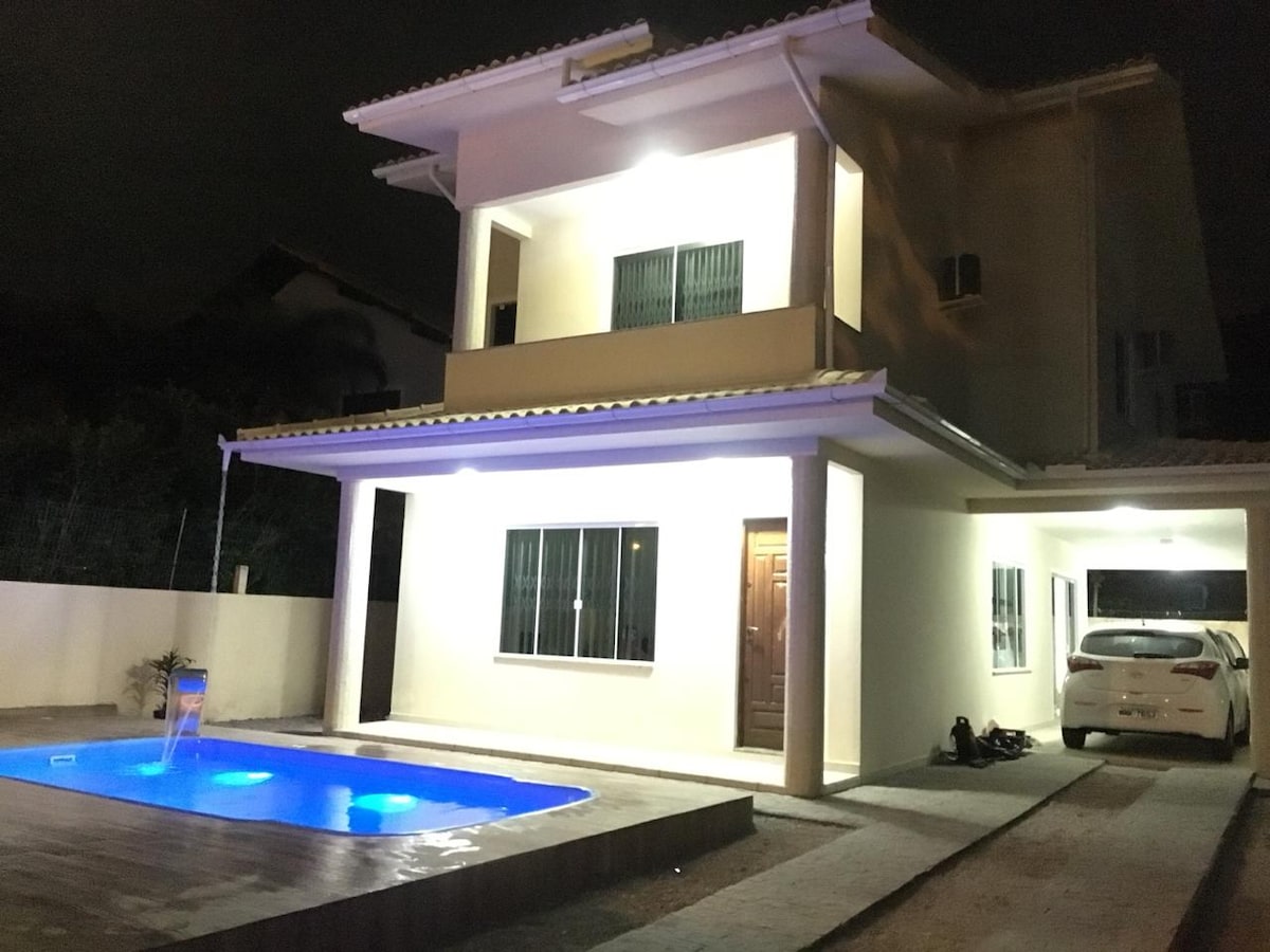一間臥室配有雙人床、冷氣、獨立浴室、全套廚房、有蓋車庫、泳池和吊床,可觀賞壯麗的日落。 房子位於通往Simão海灘的小徑對面,步行6分鐘即可抵達。 輕鬆前往Calheiros、Palmas、Praia Grande、Armação、Baia dos Dolinhos、Tingua等海灘。 快速前往市中心和餐廳。