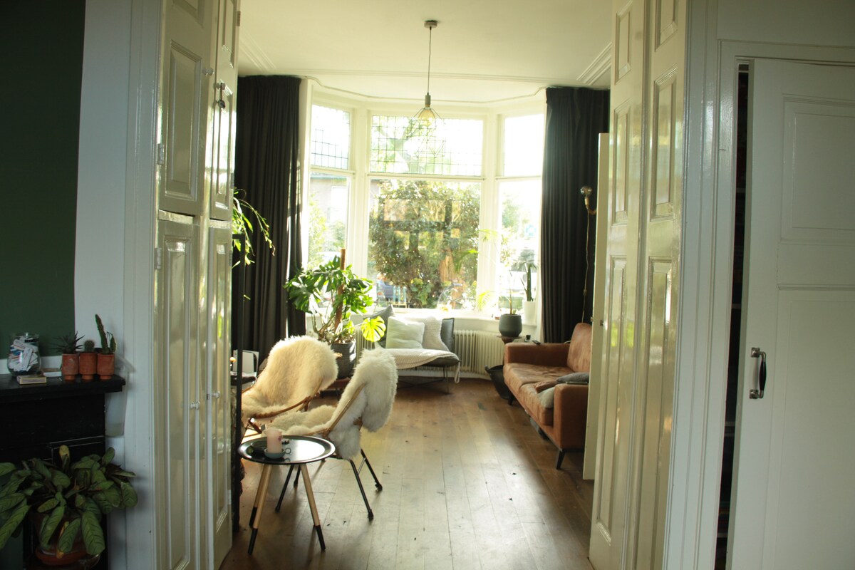 房子有桑拿房、許多植物和兩隻貓! :)坐落在一條安靜的街道上,距離歷史悠久的市中心(850公尺)、代爾夫特理工大學(700公尺)和皇家代爾夫特(240公尺)很近。 我們通常住在這裡,希望您感覺像在家一樣。 我們竭盡全力確保清潔,但請不要期望飯店標準。 像當地人一樣體驗這座城市,這就是我們對 Airbnb 的想法。 有8張床(4張雙人床) ,以及6張餐椅和高腳椅。