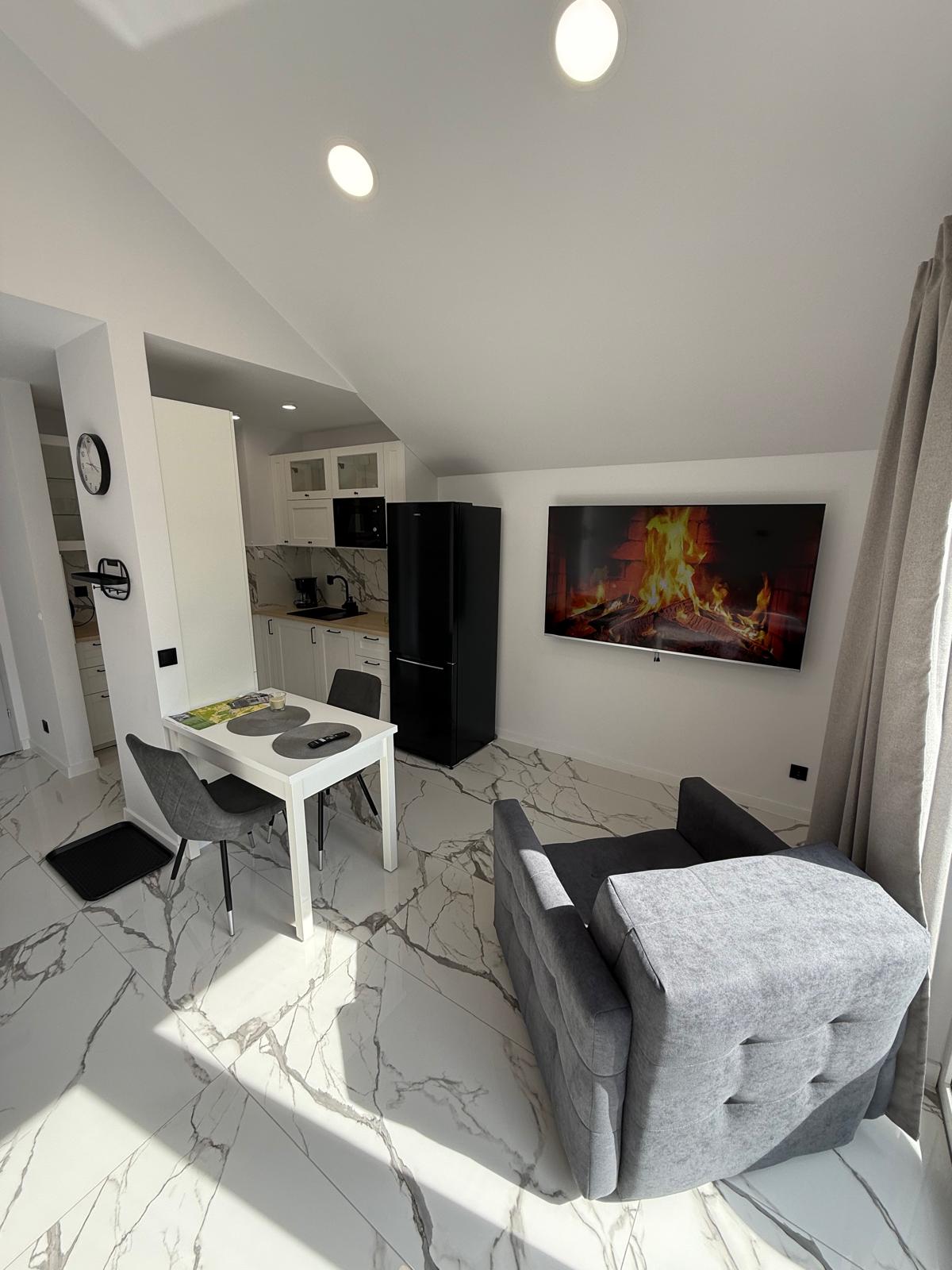 New luxury studio in a hart of Zagan. Step inside to find a cozy yet elegant living space which offers several outstanding features, including Air Conditioning Heated floors Fully equipped kitchen has all the necessary appliances and furniture. This includes a sink, stove, oven, dishwasher, and storage. Flat screen TV High speed internet Private parking space Balcony Washer And much more !!!