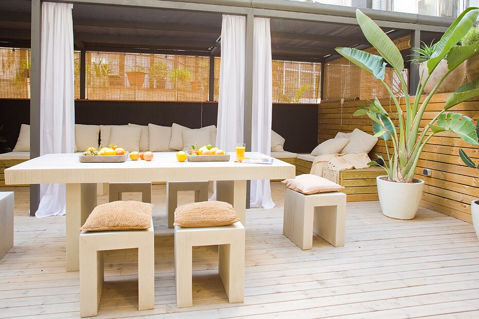 Eric Vökel Sagrada Familia Suites This bright 50m2 penthouse apartment offers a 25m2 terrace, with a double bedroom and a bathroom, a living room with a fully equipped kitchen ; and sun, plenty of sun on the terrace. Maximum capacity: 4 people (double sofa bed for 2 guests) For stays of 7 nights or more, weekly housekeeping is provided. Additional cleaning services can be booked at an extra cost. Bed linen and towels included.