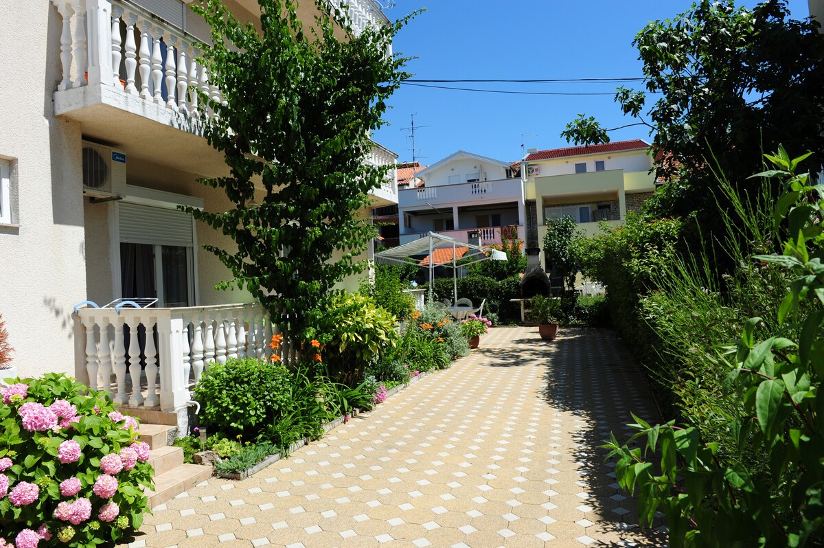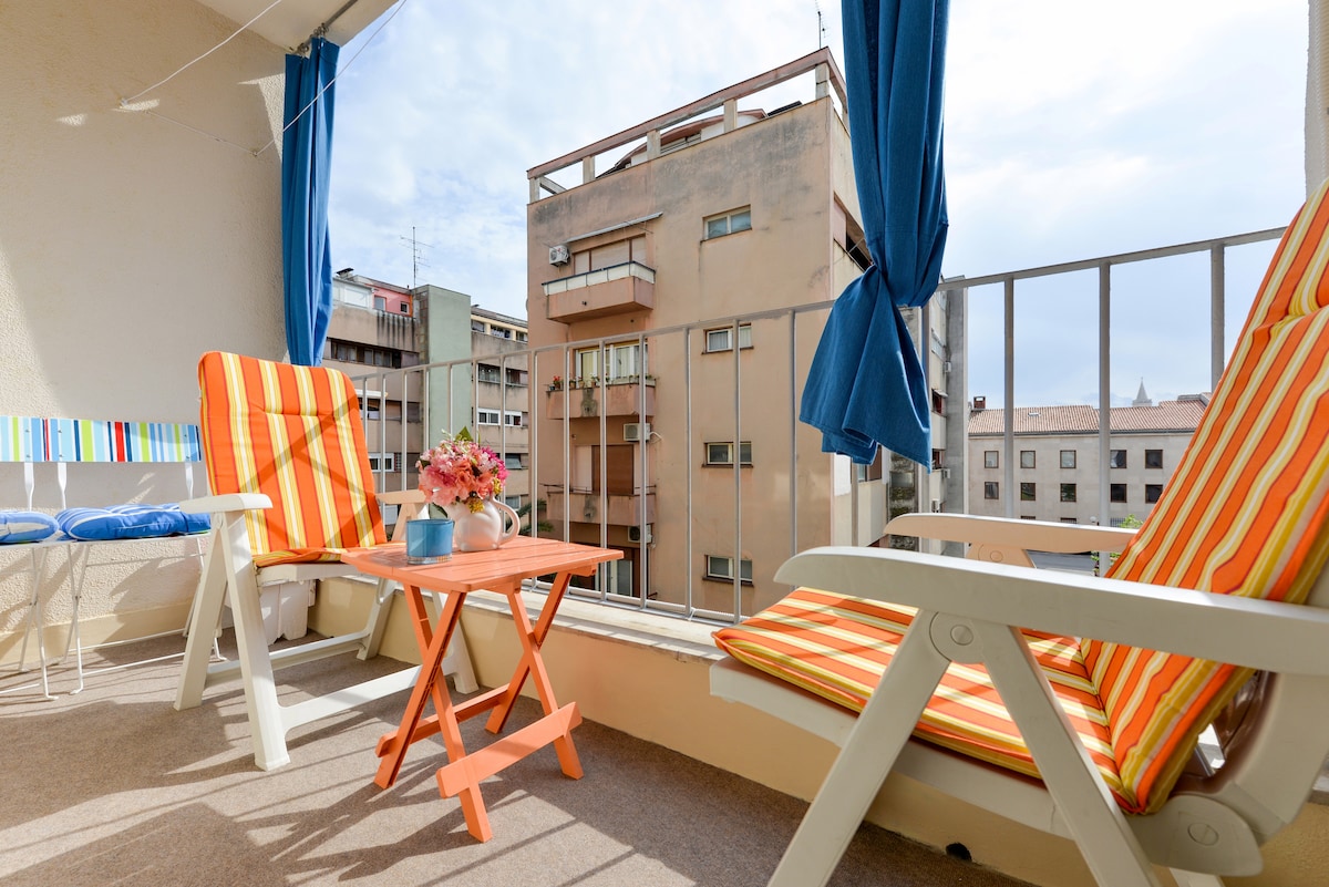 OLD CITY 5min walk away! SEA PROMENADE 1min walk away! PARKING free! FAMILY friendly,safe neighbourhood! RELAXING 2 bedrooms+ living area with comfortable sofa-bed, well equipped kitchen,sunny BALCONY. LOTS OF NATURAL LIGHT. Separate bathroom/toilet. WIFI good &free. WITHIN 100m :supermarkets,bakeries,bank,pharmacy,diners,taxi&bus stop ..and beautiful park Vruljica for KIDS(water mill,ducks,swings,sand area). Modern SPORTS GROUNDS Višnjik,15 min walk. BEACH 25 min walk! WELCOME :))
