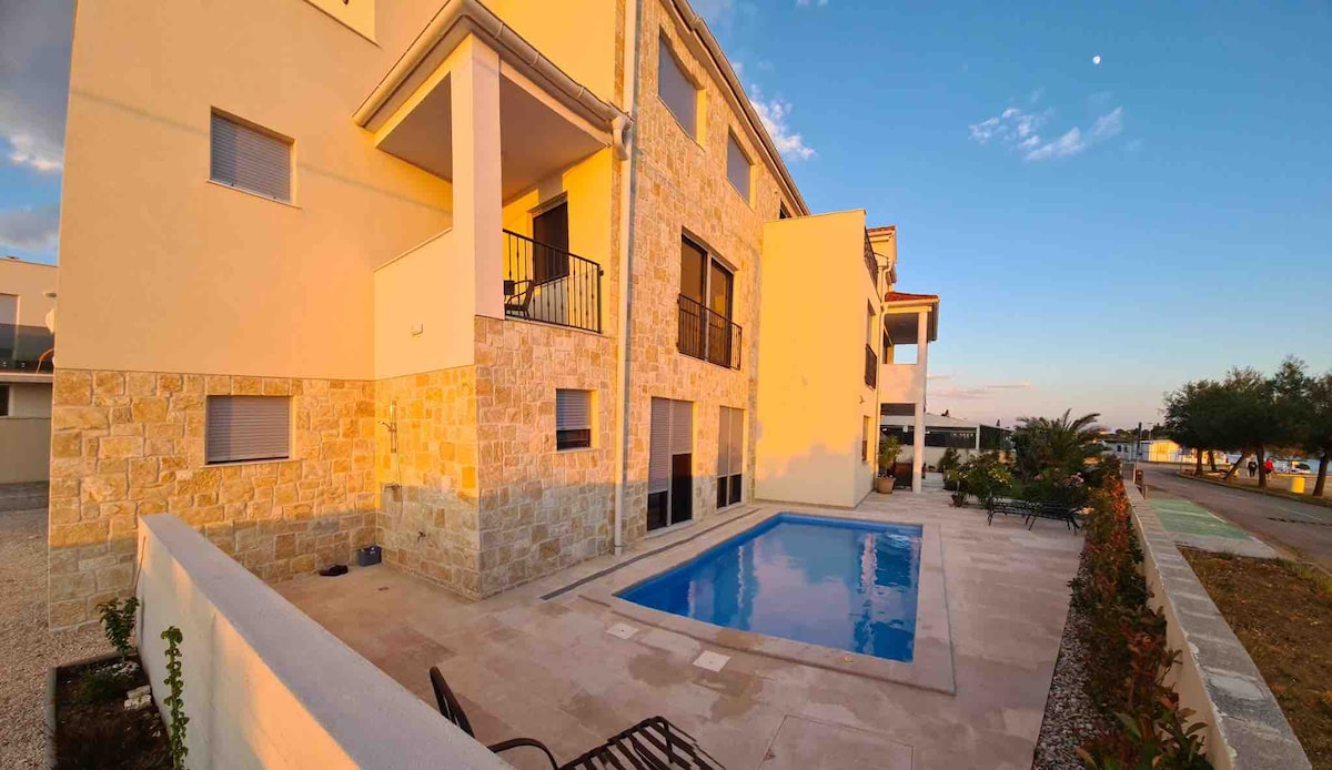 在這個設計時尚又安靜的單間公寓中好好放鬆身心。舒適的臥室/客廳,配有獨立浴室、設備齊全的廚房、空調和可愛的露臺。 免費 WiFi 和停車位。共用烤肉。 頂級位置!步行僅2分鐘即可抵達美麗的海灘。 靠近市場、麵包店、冰淇淋店、餐廳和酒吧。距離扎達爾舊城區僅5公里。(巴士站50公尺)。