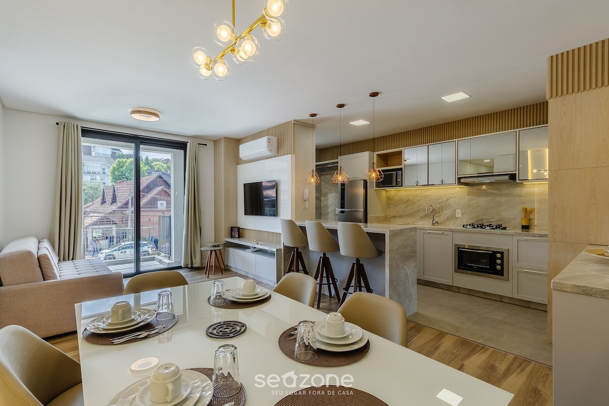@apaconchego101 Apartment aconchego 101,位於Gramado中心,靠近有遮蔭的街道,有咖啡廳、商店、藥店和餐廳。 除了裝潢精美外,它還提供: 2間臥室、空調q/f、社交浴室和24小時車庫,步行即可完成一切, 100%家具,最多可容納6人。 網路、電視在所有環境中都很智能。 非常適合葡萄酒的陽臺。 無需開車離開車道,即可享受最美好的草坪,享受在溫暖的地方生活的體驗。