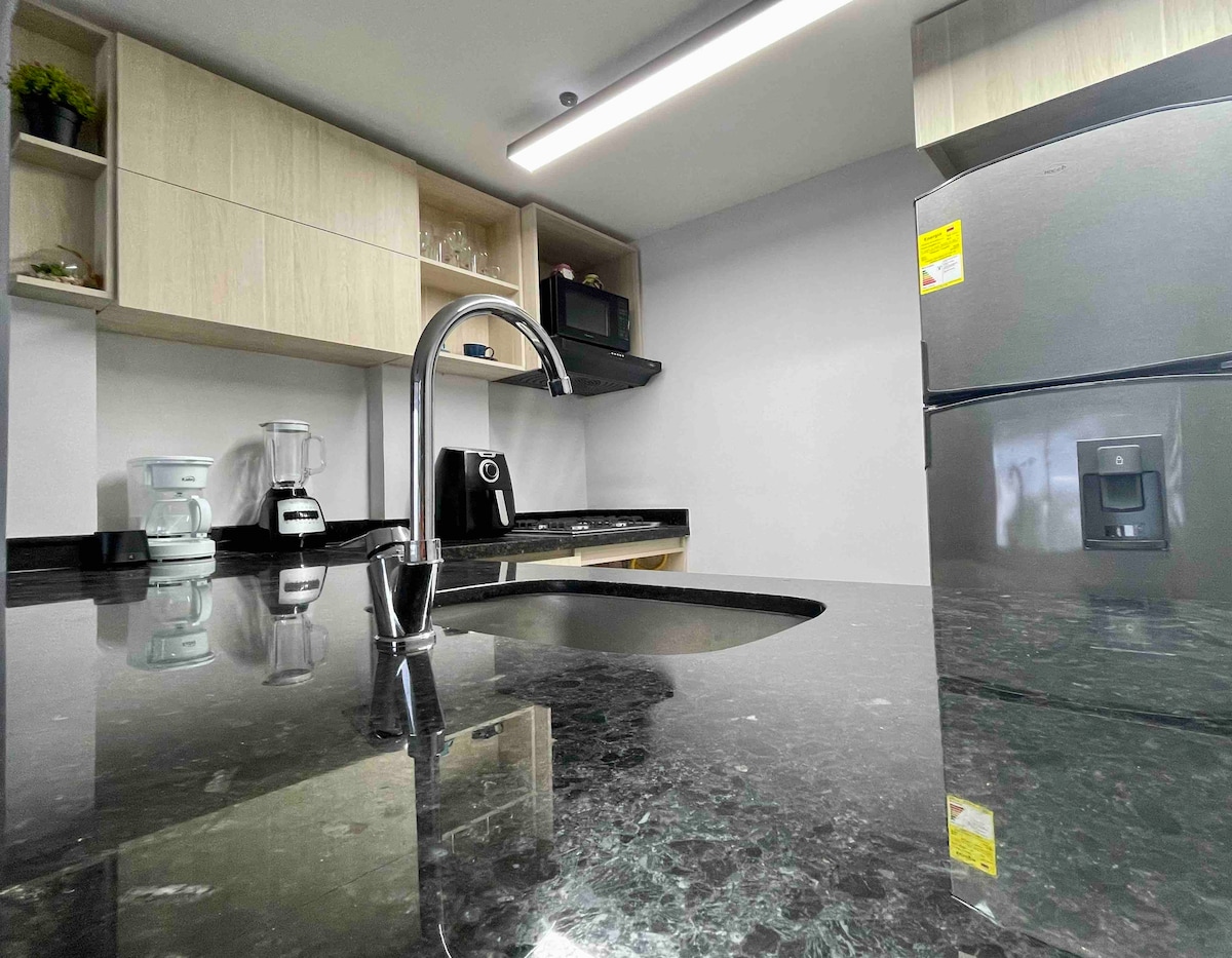 在GZ Tower 9樓的這間現代閣樓式公寓享受難忘的體驗: *彈性入住和退房 *Wi-Fi 900 Mbps *距離伊比利亞美洲診所一個街區,距離Viva Mall三個街區。 * 1間臥室,配有標準雙人床和空調。 *配有沙發床和空調的客廳。 *洗衣機/烘乾機 *附近有Smartfit健身房(收費)。 *免費私人停車位 *理想位置:靠近購物中心、主要診所和旅遊區。