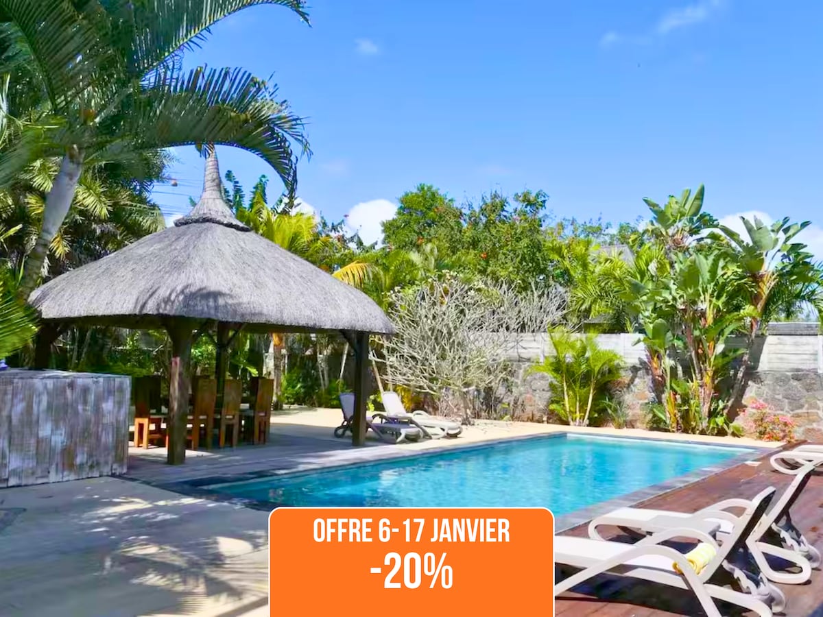 位於毛里求斯島北岸大灣(Grand-Baie)的全私人巴厘式別墅 別墅位於一個安全的住宅區,開車 5 分鐘即可抵達海灘和商店。 每週 5 天(星期日和假日除外)提供清潔服務,整理床鋪和打掃別墅。洗衣機可供您清洗個人物品。 提供嬰兒設備。 我們不提供家庭廚師服務。