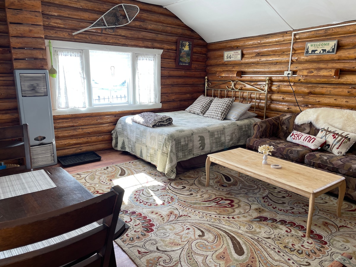 Historic studio cabin in the heart of Grand Lake Village. Two blocks from the lake and Marina. Walking distance to all restaurants and shops. kitchenette, bathroom with shower and cooking essentials as well as a little private back yard with table and chairs! Perfectly located near everything, yet quiet and nestled in a charming courtyard. (one friendly dog permitted)