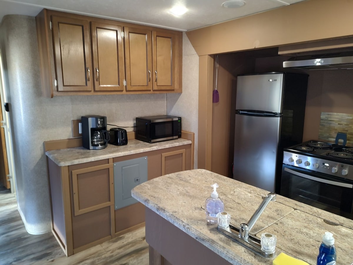 逃離喧囂,來到這輛全新的露營車,欣賞美麗景色! 房源配有一間舒適的標準雙人床臥室、一張高架床和一張沙發床,提供額外的舒適空間。 在設備齊全的廚房內盡情烹飪,並充分利用可供拖車和並排式車輛停放的充足泊車位。 有一個寬敞的開放式車庫,可供停放車輛和維修車輛。 無論你是來這裡放鬆身心還是完成工作,這裡絕對是你探險的理想大本營! 非常適合你在莫阿布 (Moab) 探險的男人空間!