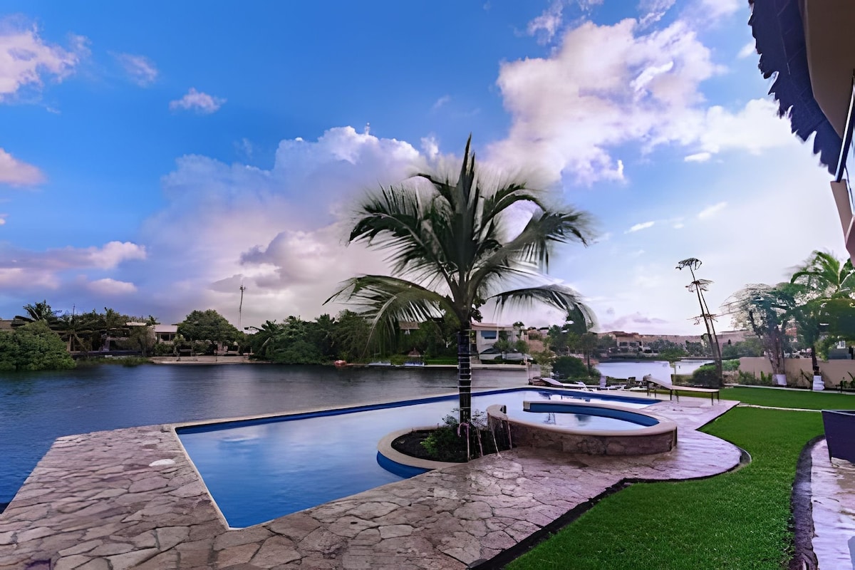 * 專屬泳池 * 自動瀑布 *室溫按摩浴缸 *免費前往海灘 * 4間臥室 * 4間衛浴 *配備廚房 *安全 * 天花板和地板風扇 *《高爾夫球場景觀》 *高速Wi-Fi 300MB * 65 吋 + 2/32 吋智慧電視 * Netflix + YouTube * Weber Grill * 有遮蔽的露台 *海灘和海豚通道 *安靜安全的別墅 * 進階服務的空調 * 為已登記的房客準備床鋪 *共用公共區域(車庫、主走廊)