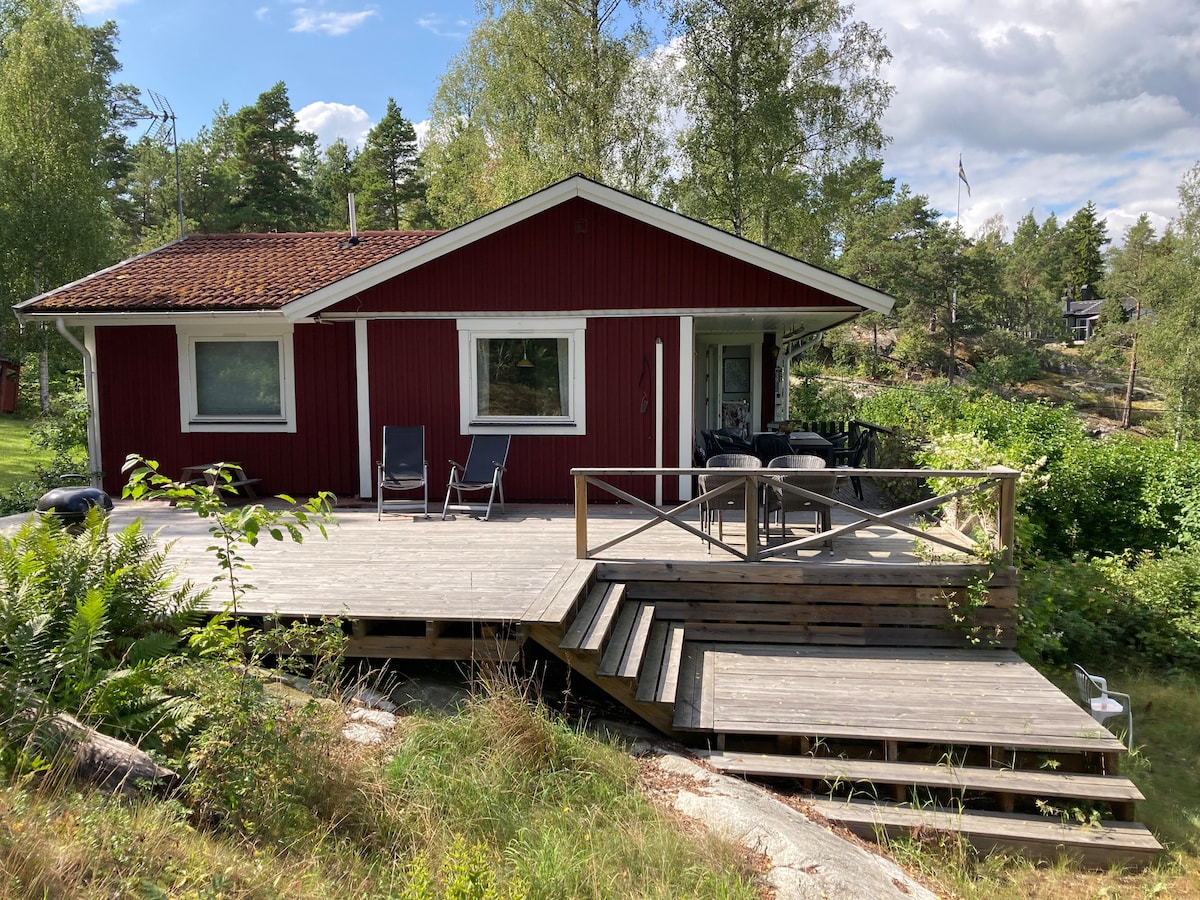 羣島田園詩般的房子,配有大型木製甲板,可欣賞湖景。 共用泳池碼頭,可供日光浴/洗澡。 房子裡有火坑和大花園。 全年都有許多休閒活動。提供Kubbspel、羽毛球。 清潔服務由房客完成。 /Eng: 田園詩般的羣島房屋,適合四季參觀。 沿著房子朝向大海的大露臺。共用碼頭/碼頭,可供遊泳/洗澡。 房子裡有壁爐。 放鬆身心的大草坪。 清潔由房客進行。 (屋內有一些私人物品)
