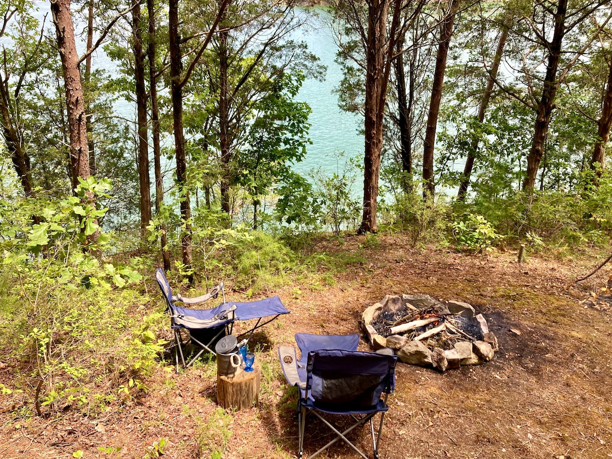 Otter Outpost is a unique and serene glamping spot on a private island in Douglas Lake, TN. Access is by boat only—we’ll pick you up in a pontoon boat at our mainland property, where you can safely park. On the island, enjoy a cozy canvas tent with a covered deck and plush bedding, a hammock in the trees, a well-stocked camp kitchenette, and a pristine bath house with a hot shower. Explore in our rowboat, swim, or soak in the views. Perfect for couples or small families seeking quiet adventures.