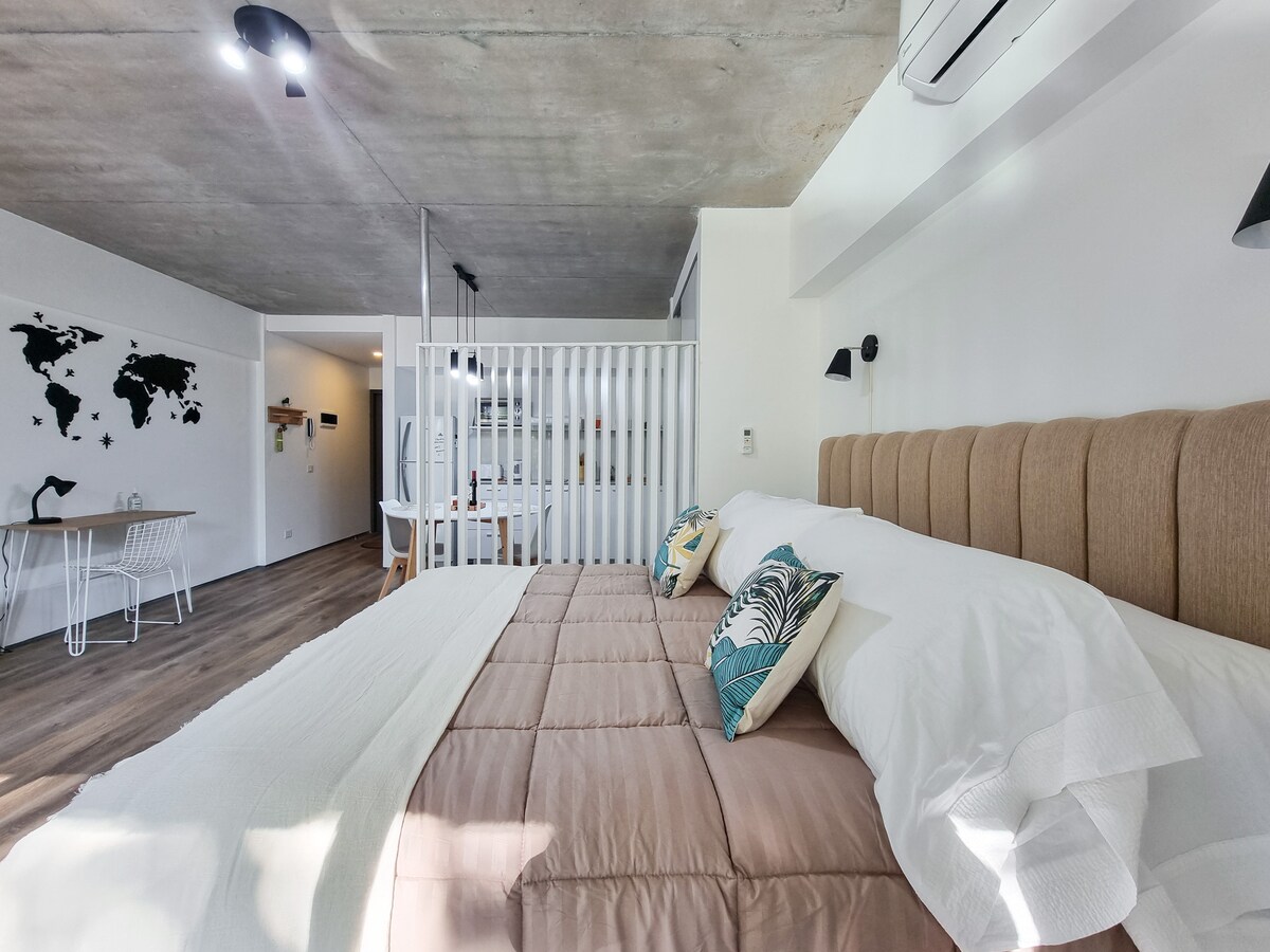 為了安全起見, 12歲以下的兒童不得入住。(公寓的陽臺和窗戶上沒有封閉網路) 這間單臥室公寓將讓您在布宜諾斯艾利斯度過難忘記的住宿體驗。 設備齊全的廚房。 加大雙人牀,客廳配有沙發牀。 由於其高速網路,您可以放鬆身心或工作。