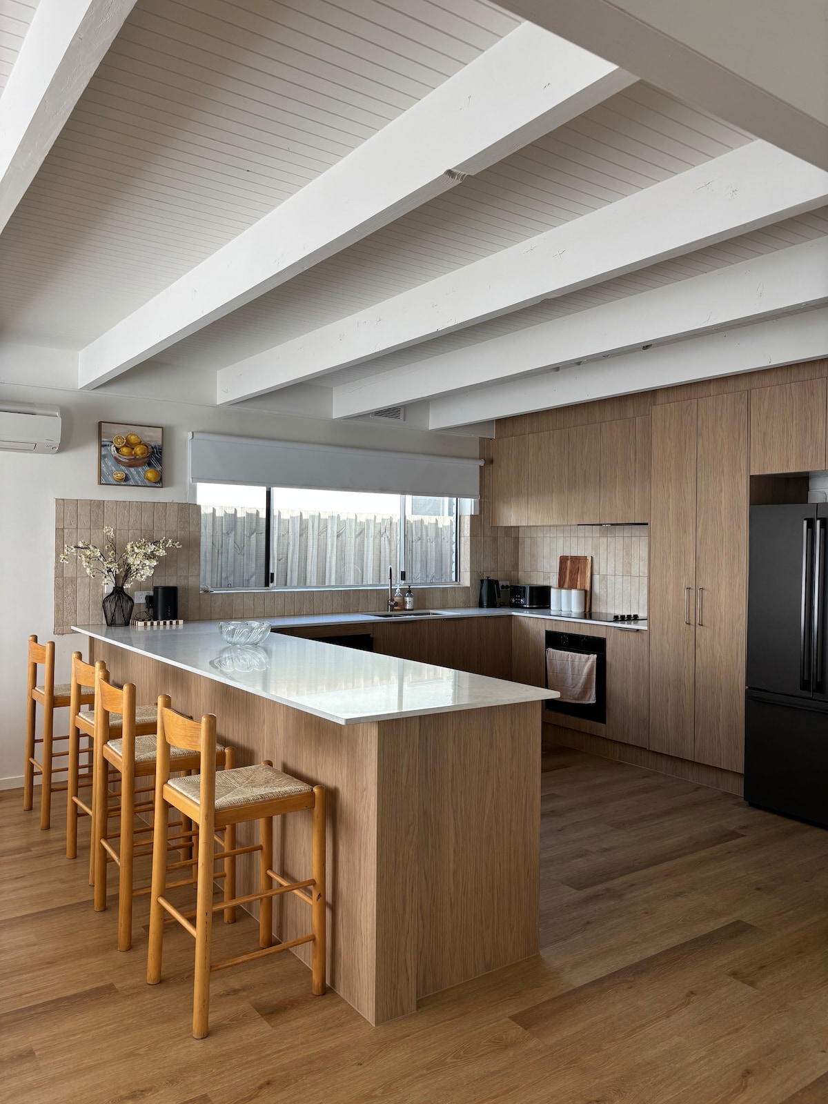 We invite you to experience our gorgeous and unique property located right in the heart of Barwon Heads. Blending the original, heritage listed, front section with the architecturally modern designed back section you get to enjoy the best of both designs. Offering 3 bedrooms (6 guests), 2 bathrooms, 2 lounge rooms, open plan kitchen, living, dining area opening up to the balcony with an electric BBQ and fabulous views. We also have an elevator, EV charger, fast Wi-Fi and 7.1 star energy rating.